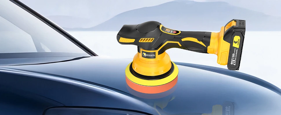 The CONENTOOL 6-inch cordless car polisher weighs only 1 kg (including two 2.0 Ah batteries), making it significantly lighter and more portable than traditional corded car polishers. You no longer need to worry about your car rubbing against power cords, tripping over them, or experiencing electric shock.
