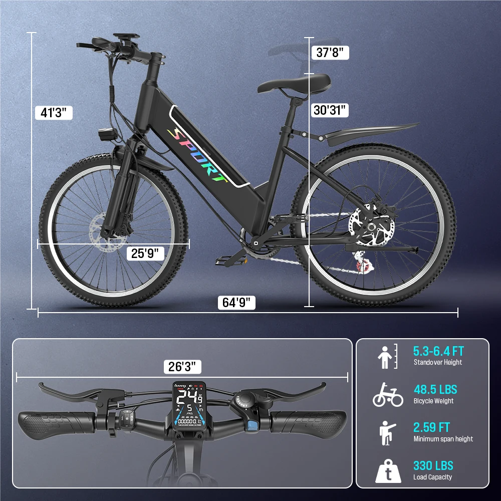 Designed specifically for teens and adults, the sturdy frame supports riders weighing up to 265 pounds (approximately 200 kilograms), ensuring stable and safe travel for all users. Combining convenience, comfort, and high performance, this electric bicycle is the ideal choice for navigating city streets, park paths, or campus routes. Its smart design and affordable price cater to diverse transportation needs.