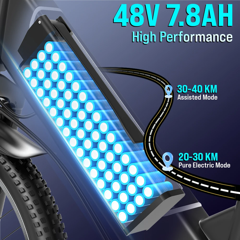 🔹 Max Range: 7.8AH-18-25 km (electric) / 25-30 km (assisted)