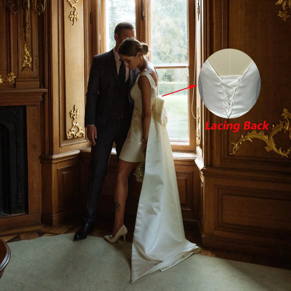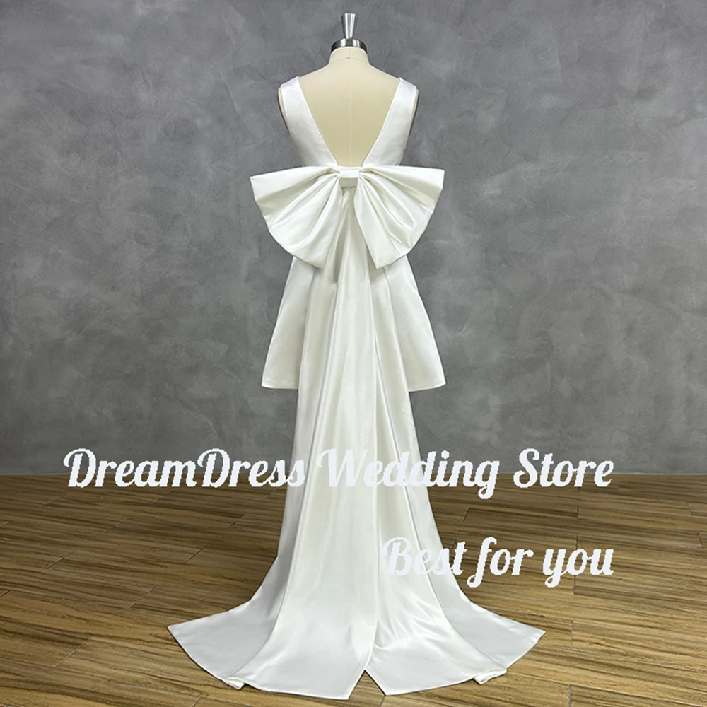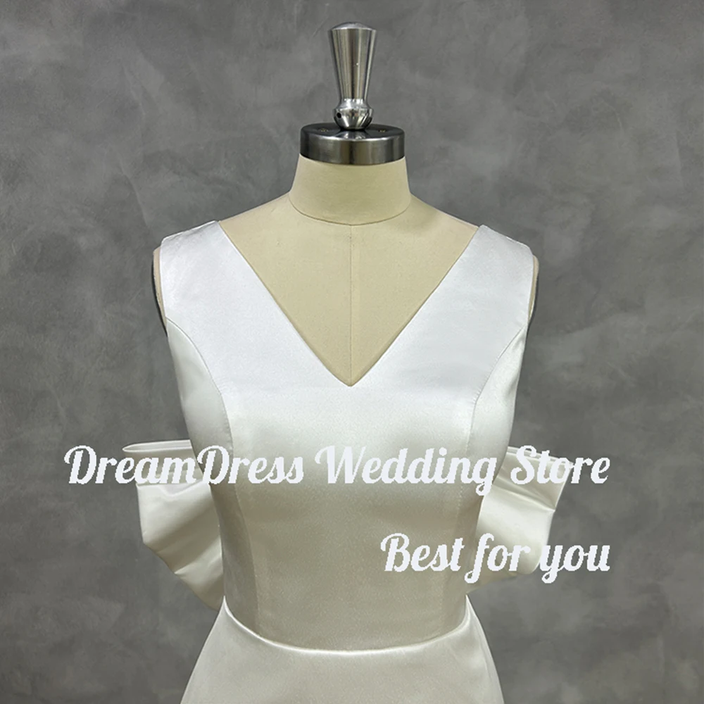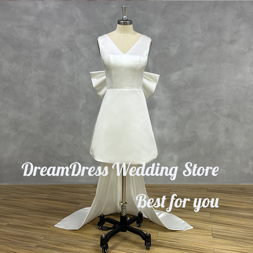 20 reviews for DREAM Customized Short Mini Satin V Neck Bridal Gown Large Bow Open Back Sleeveless Above Knee Length Wedding Party Dress 2025