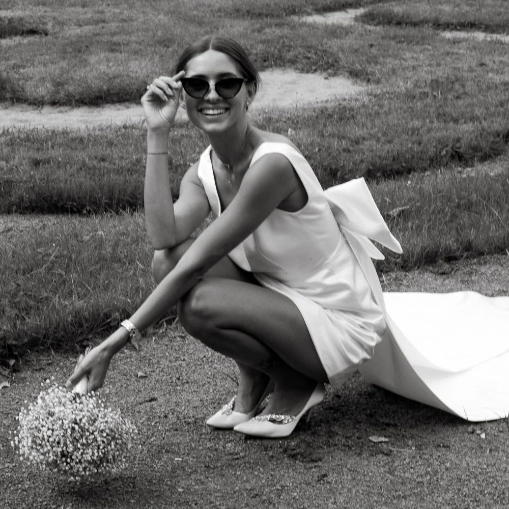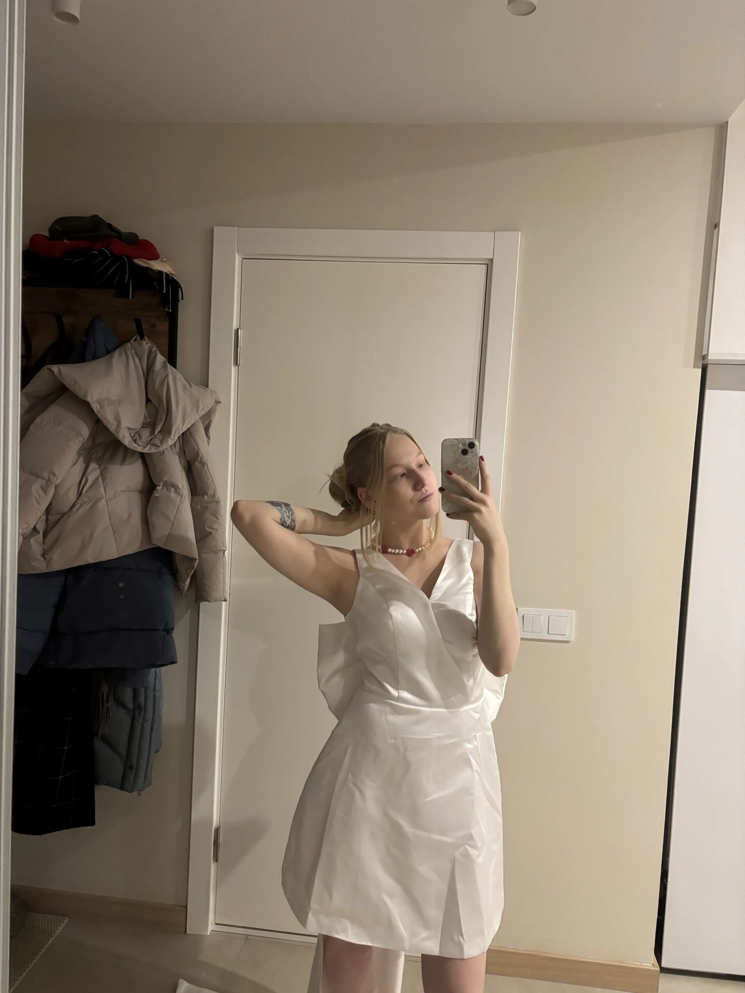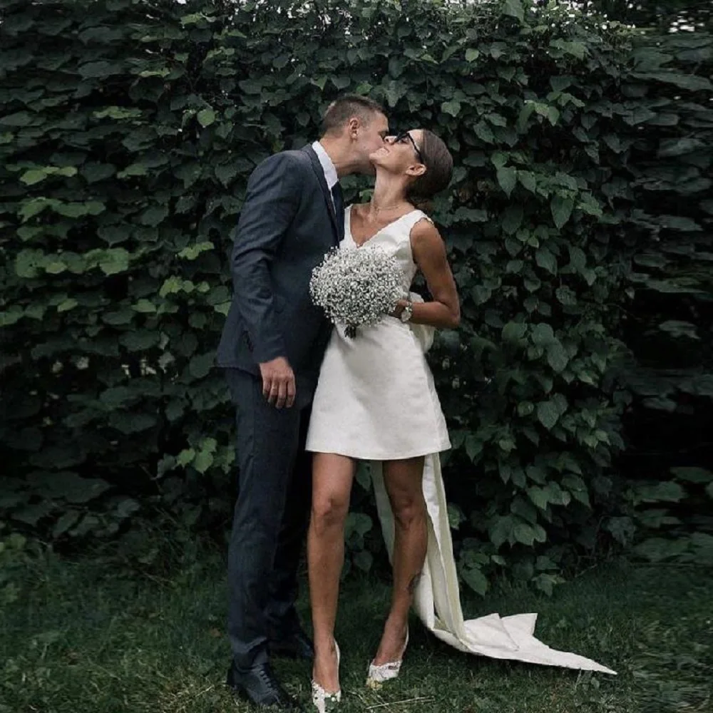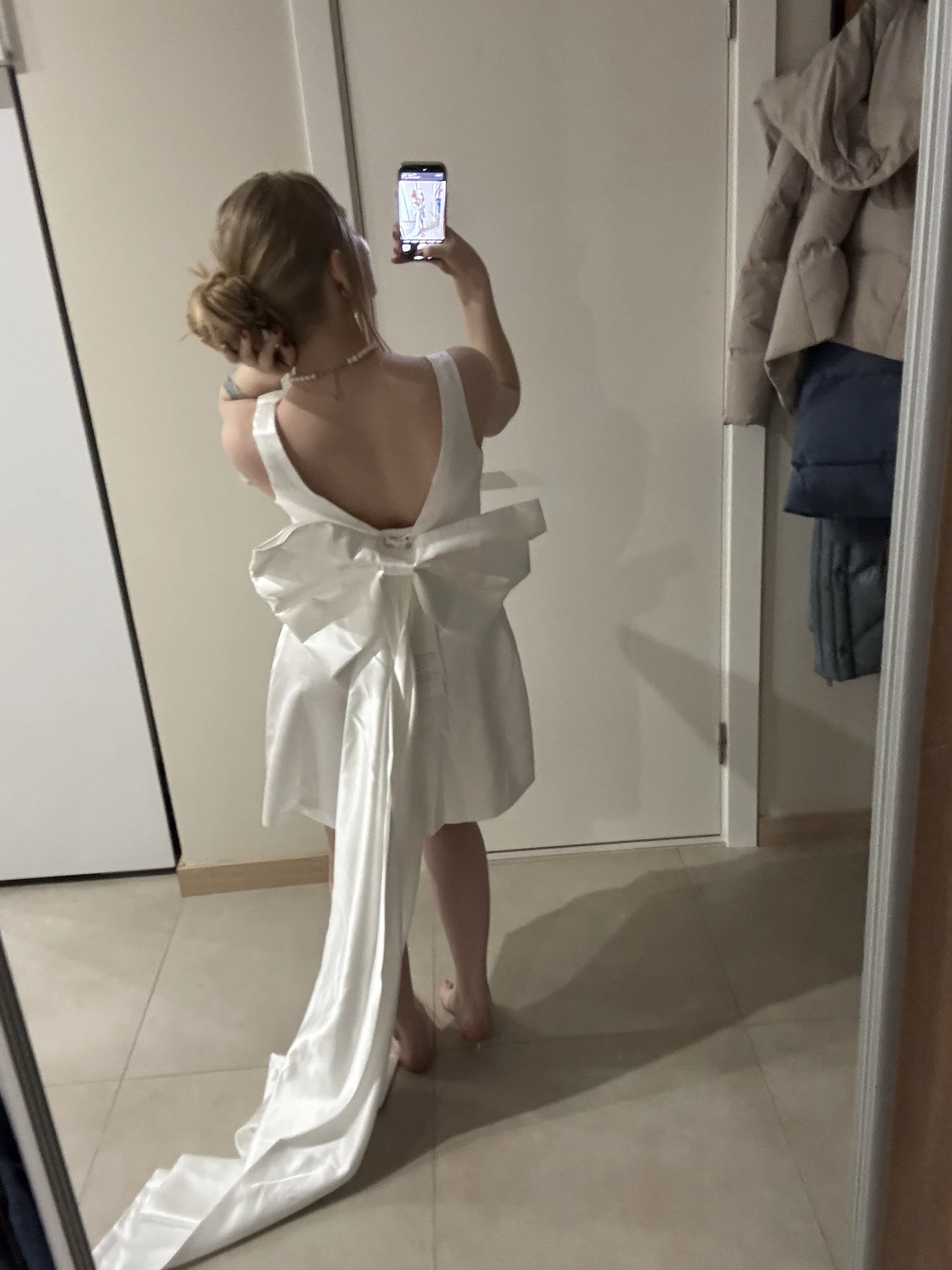 20 reviews for DREAM Customized Short Mini Satin V Neck Bridal Gown Large Bow Open Back Sleeveless Above Knee Length Wedding Party Dress 2025