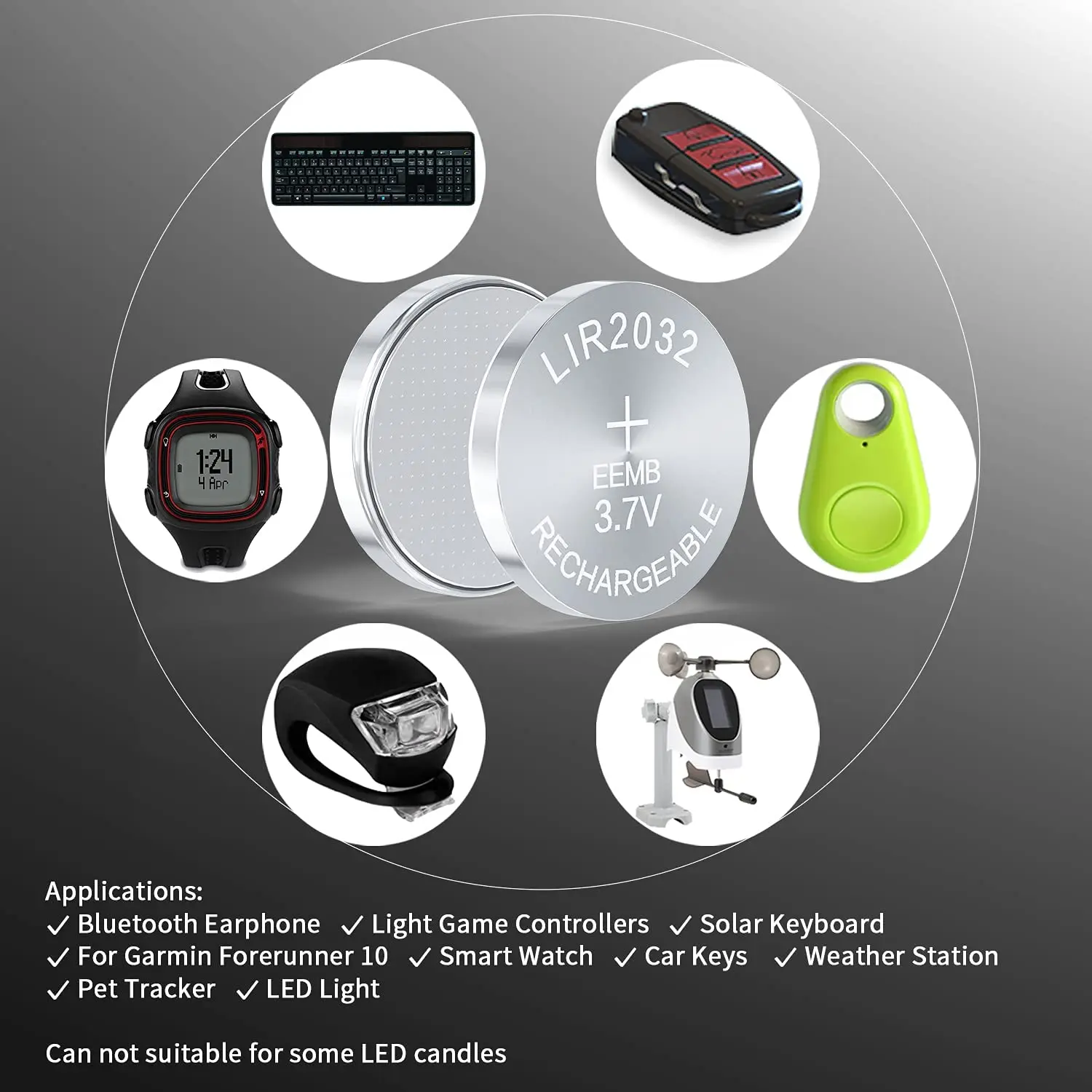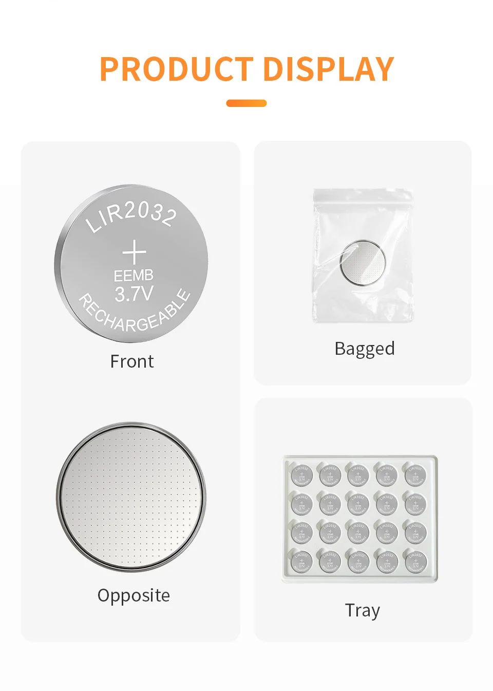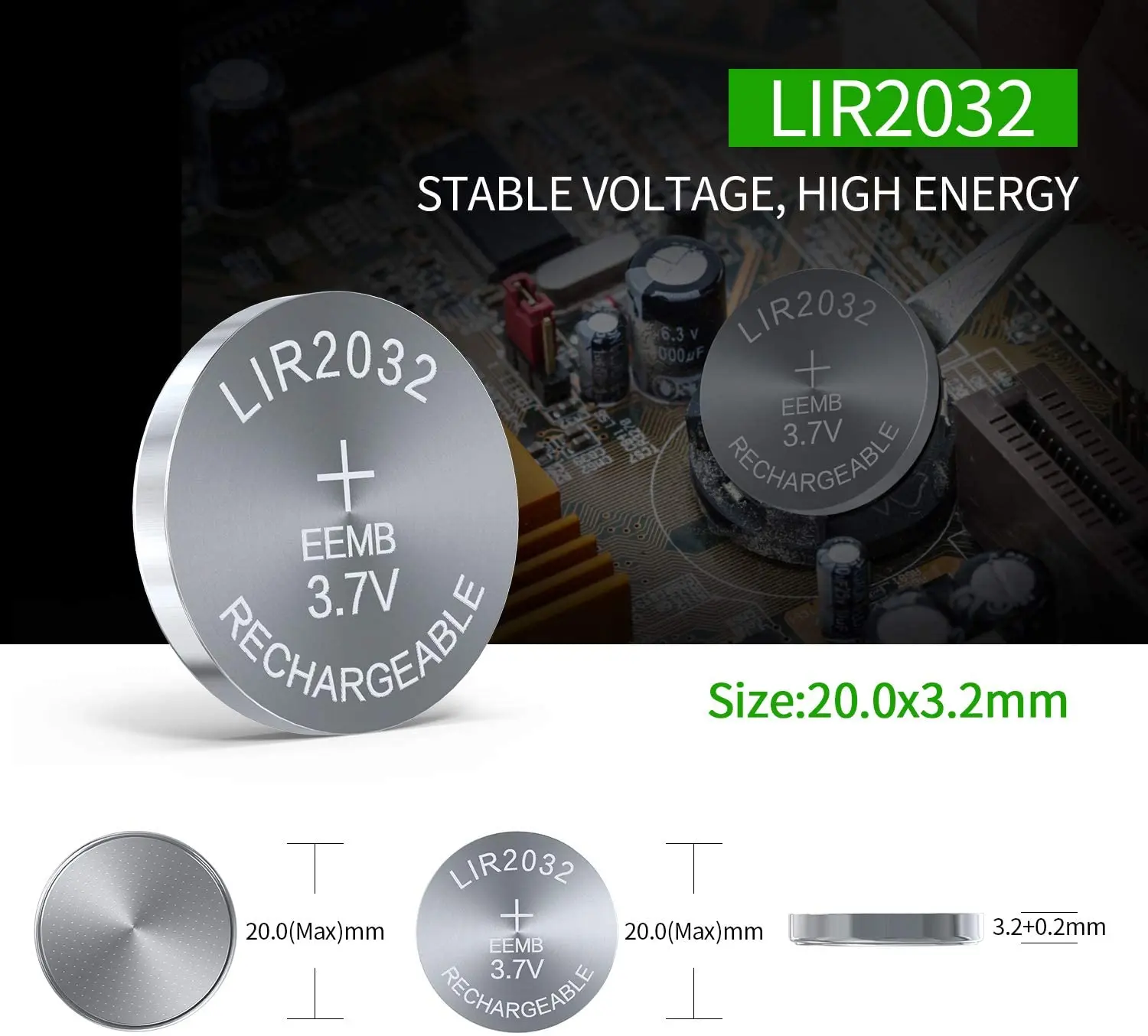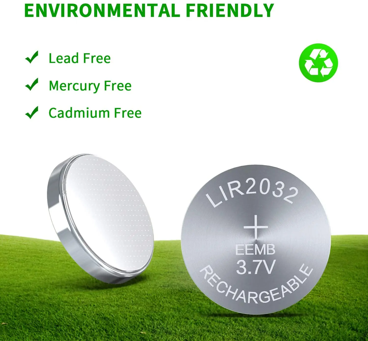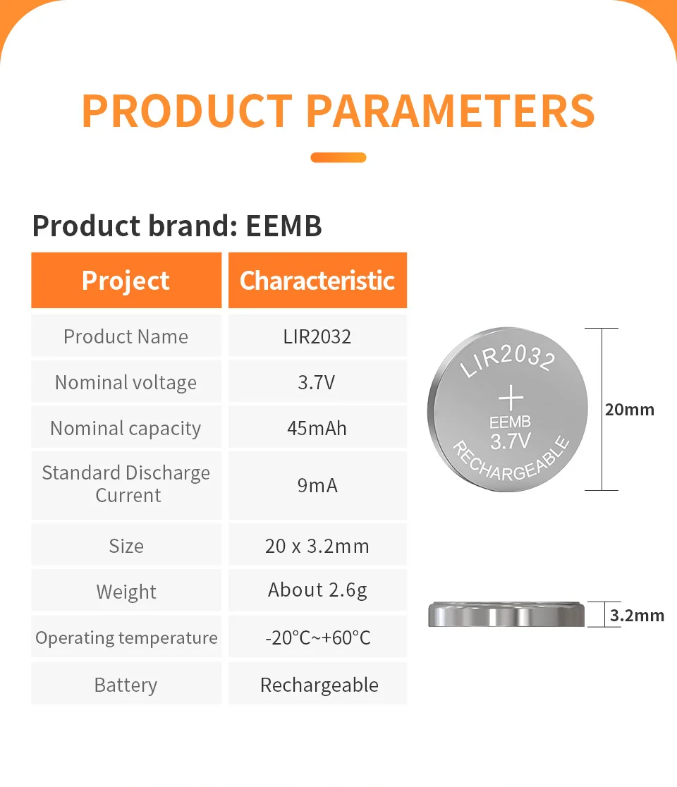 LIR2032 3.7V 45mah(rechargeable), (No charger).