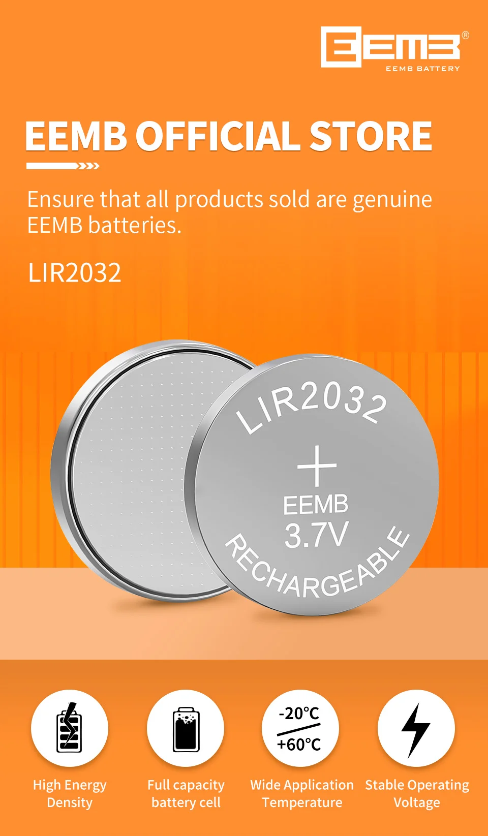 Guarantee: All products sold are genuine EEMB batteries.