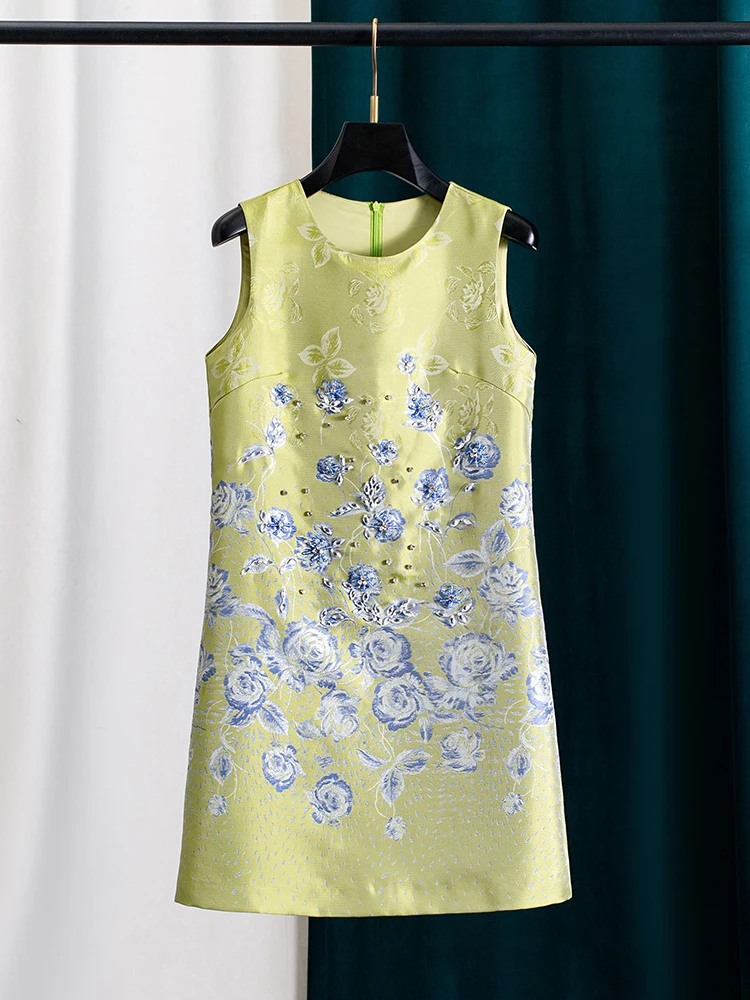 Elegant Sleeveless Beaded Rhinestone Dress for Women Summer Luxury Sparkly A-Line Party Dress High-End Formal Sundress Outfit