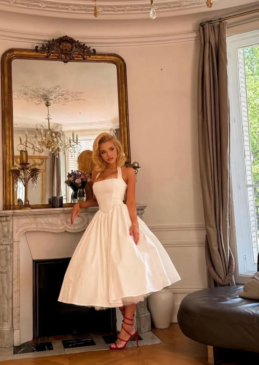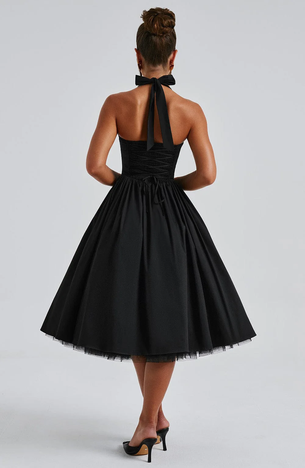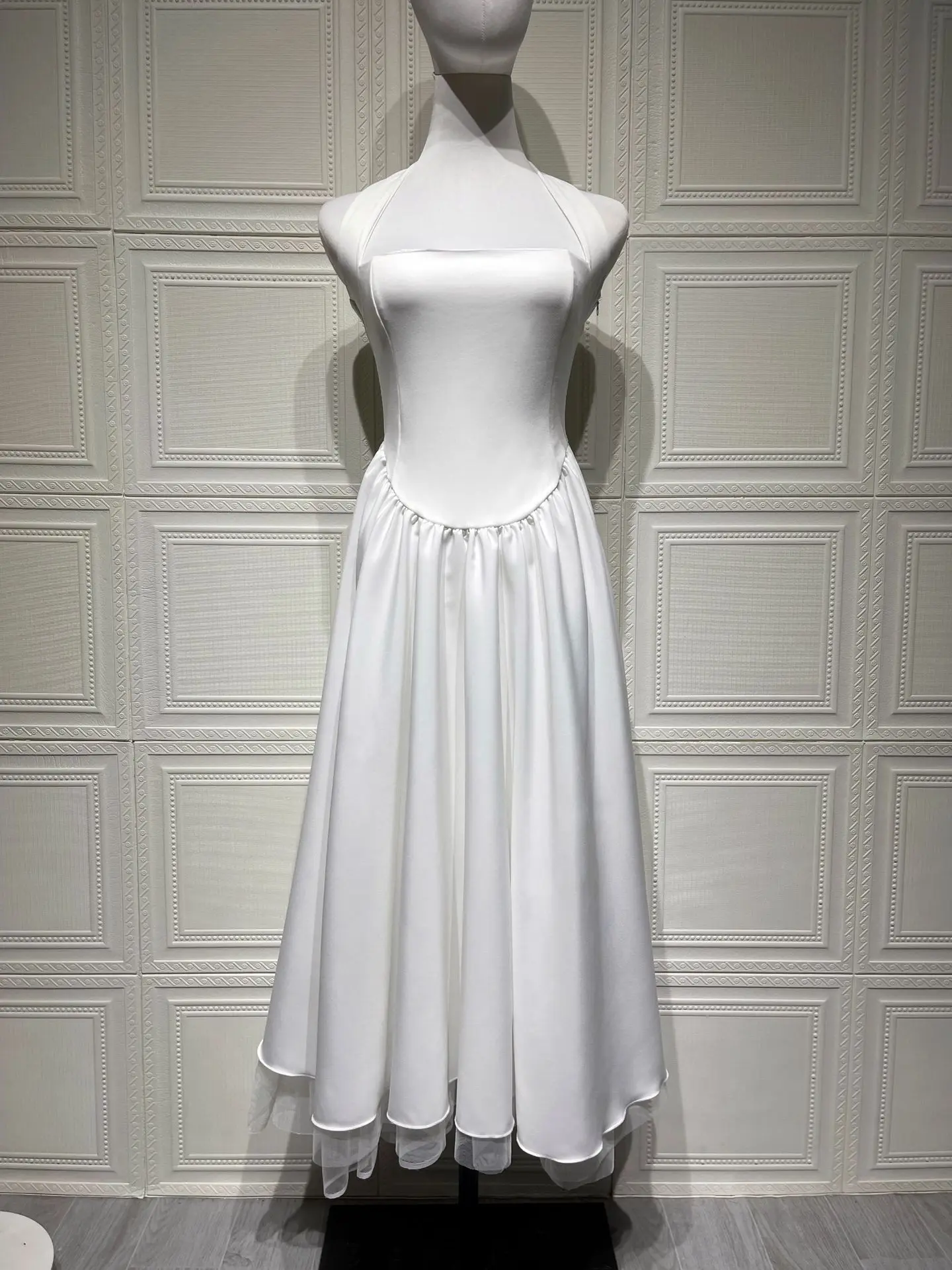 Elegant Women's Corset Strapless Midi Dress Luxury Halter High Waist Bandage Wedding Guest Dresses Evening Party Red Black White photo review