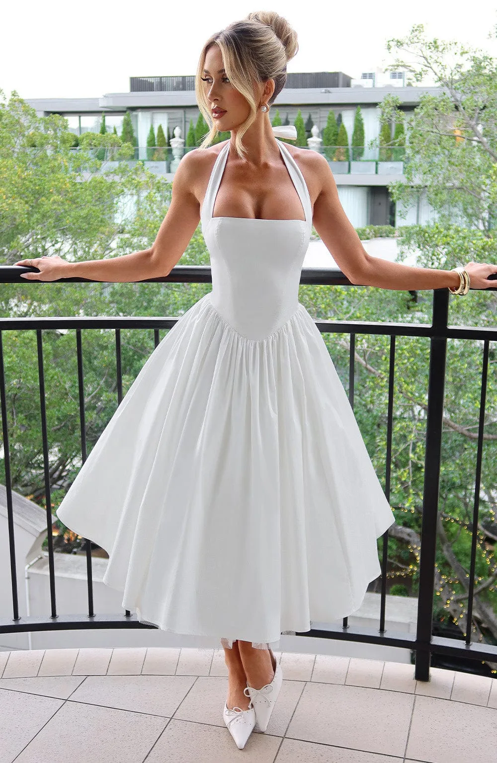 Elegant Women’s Corset Strapless Midi Dress Luxury Halter High Waist Bandage Wedding Guest Dresses Evening Party Red Black White
