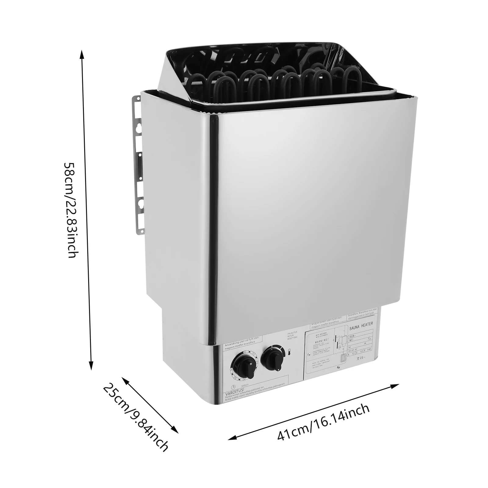Elevate your sauna experience with this professional stainless steel sauna heater! Designed for both commercial and home use, it features user-friendly large knobs for precise time and temperature control, allowing you to customize each session. The wall-mounted design saves valuable space while maintaining powerful performance. Built with premium stainless steel heating elements and high power output, it ensures fast, even, and reliable heating. Perfect for creating a relaxing and efficient spa environment in your sauna room.