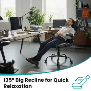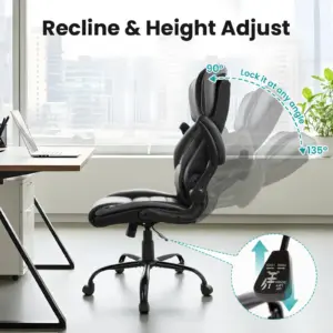 Office Chair with All-in-One Solution: This comfortable desk chair puts you in full command of your comfort.The headrest adjusts vertically to fit your height, while the backrest locks anywhere from an upright 90° to a relaxed 135°. Further customize your position with a 3-stage seat height adjustment and 90° rotating armrests, catering to your every need for a perfectly supported and productive day