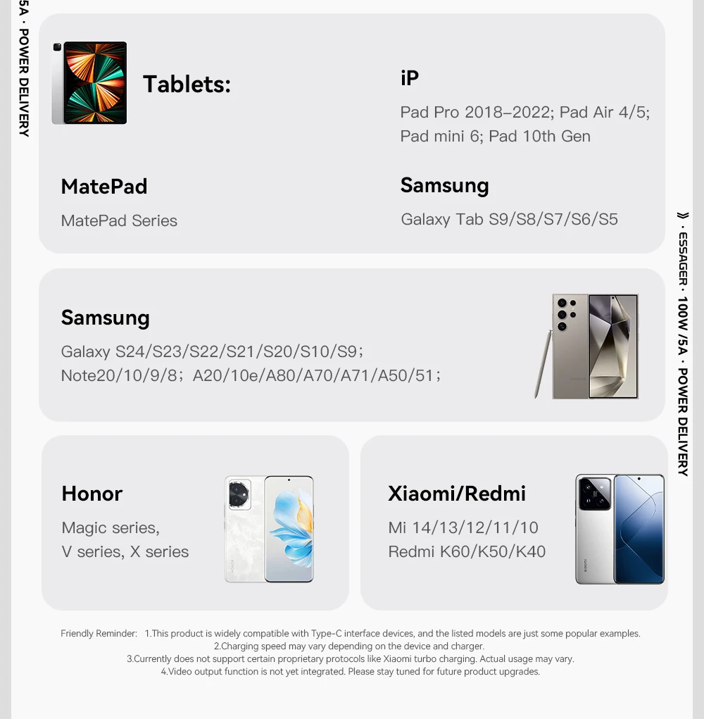 â‘¡Not support certain proprietary protocols, such as Xiaomi Turbo, Dart Protocol, Supervooc. Actual usage may be different.