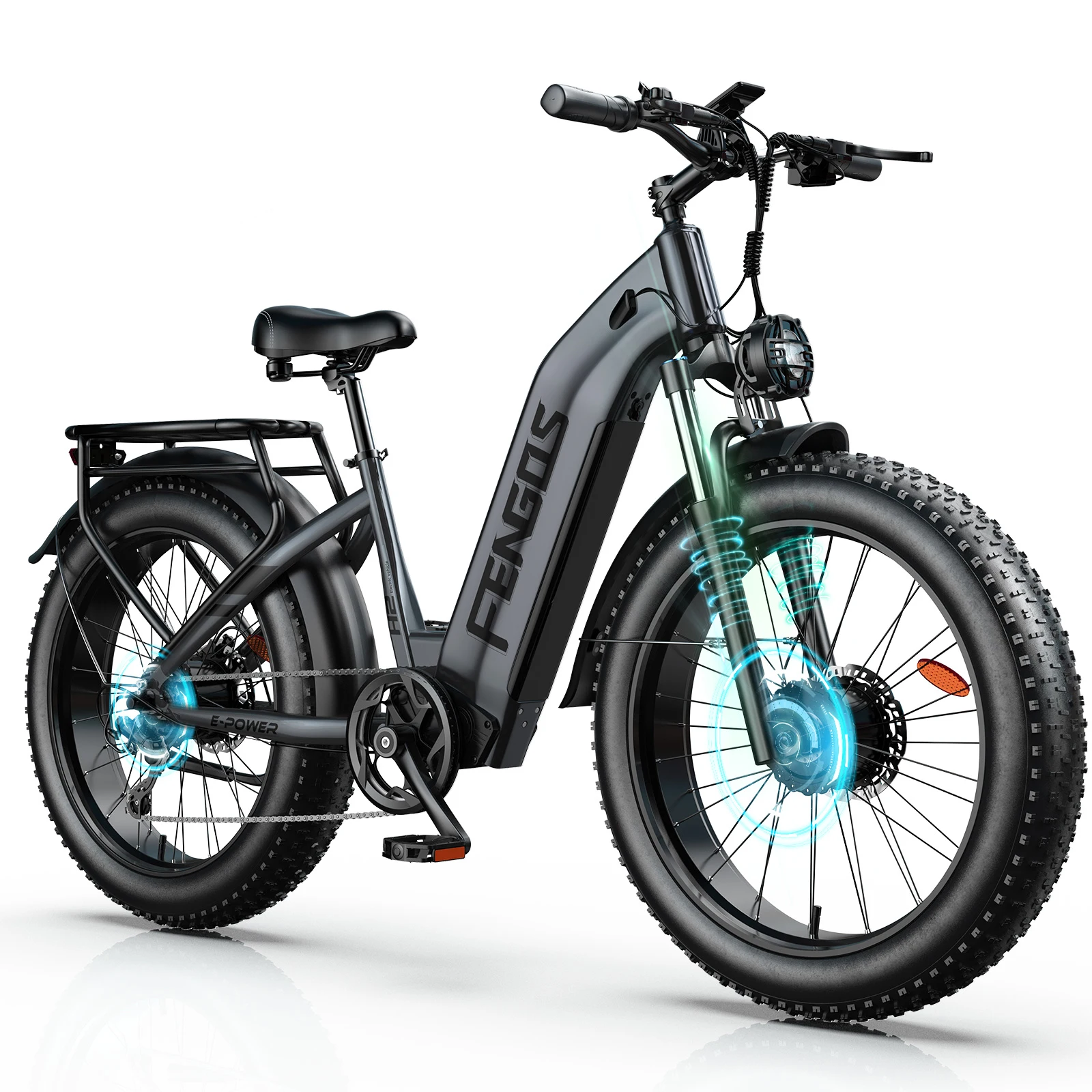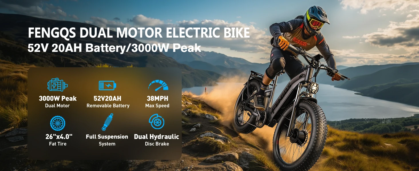 1 review for FENGQS H2 Electric Bike,52V20Ah Battery Mountain Electric Bicycles,Peak 3000W Dual Motor,50km/h Max Speed,26×4 Inch Fat Tire EBI