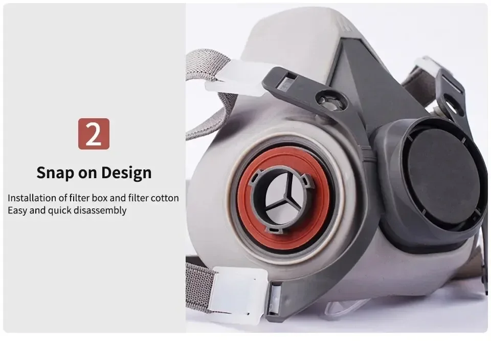 • Reusable Half Face Cover :This respirator features a reusable half face cover, providing long-lasting protection against harmful chemicals and gases in the workplace.