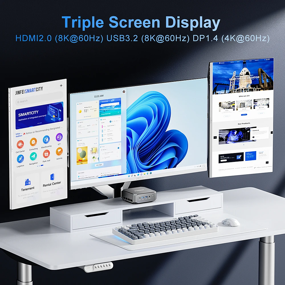 Featuring WIFI6 and BT5.2, this mini PC ensures fast and stable wireless connections.