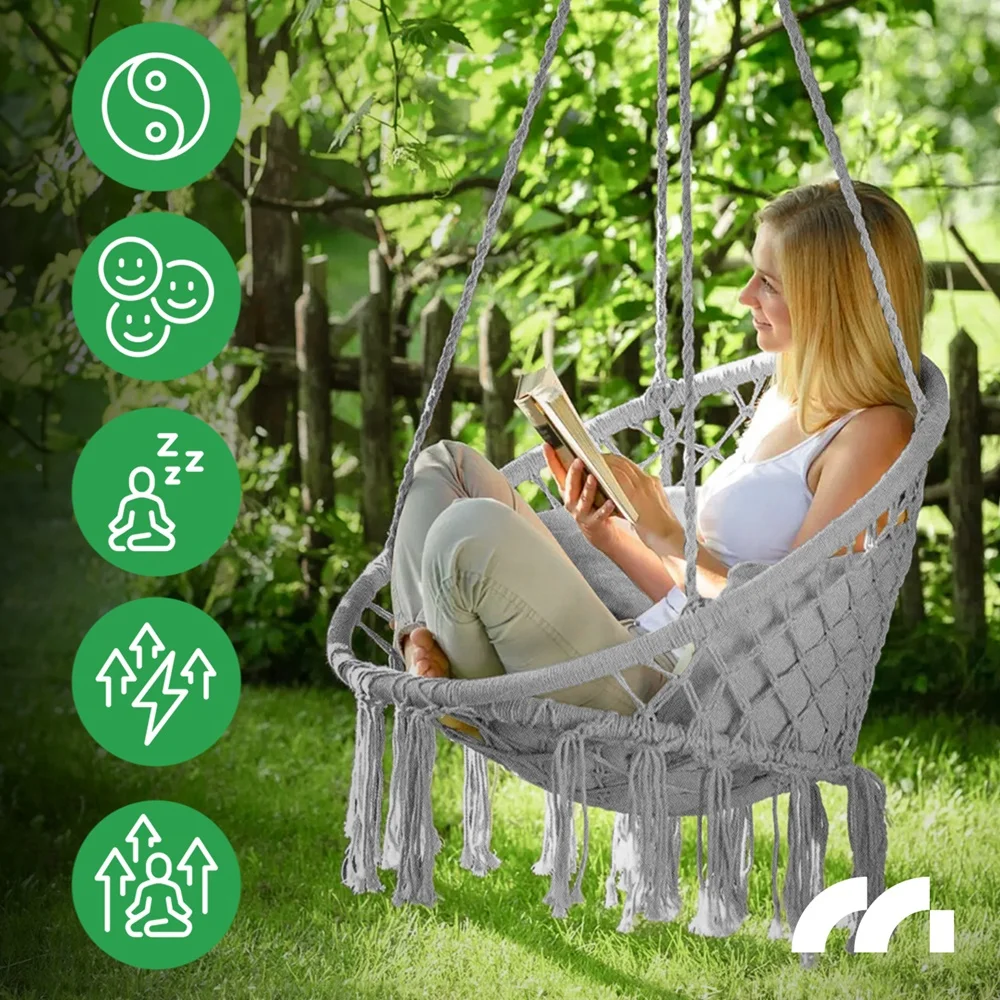 Regardless of the place of use-whether on the terrace, in the garden or in a cozy interior-hanging armchairIs an oasis of peace and relaxation, Encouraging to escape from everyday worries andTo give yourself to moments only for yourself. This is the perfect place to immerse yourself in your favorite reading, enjoy your morning coffee or just sink into your thoughts, floating on a swing among the sounds of nature. Hanging chair createsThe possibility of creating your own asylumFull of beauty, comfort and inspiration, inviting you toCreating memorable momentsSurrounded by nature and aesthetic design.
