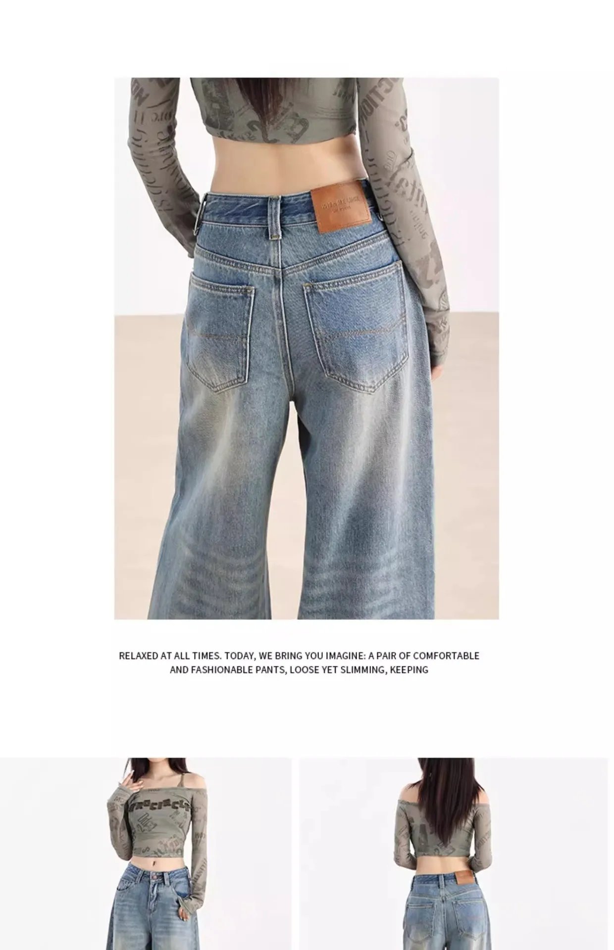 Our jeans feature a trendy wide-leg style that provides a relaxed fit without sacrificing fashion. As a must-have addition to your wardrobe, these “trailing pants” are designed to seamlessly drape over your favorite footwear, making every step a statement.