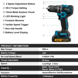 - Max. Drilling Diameter: 13mm