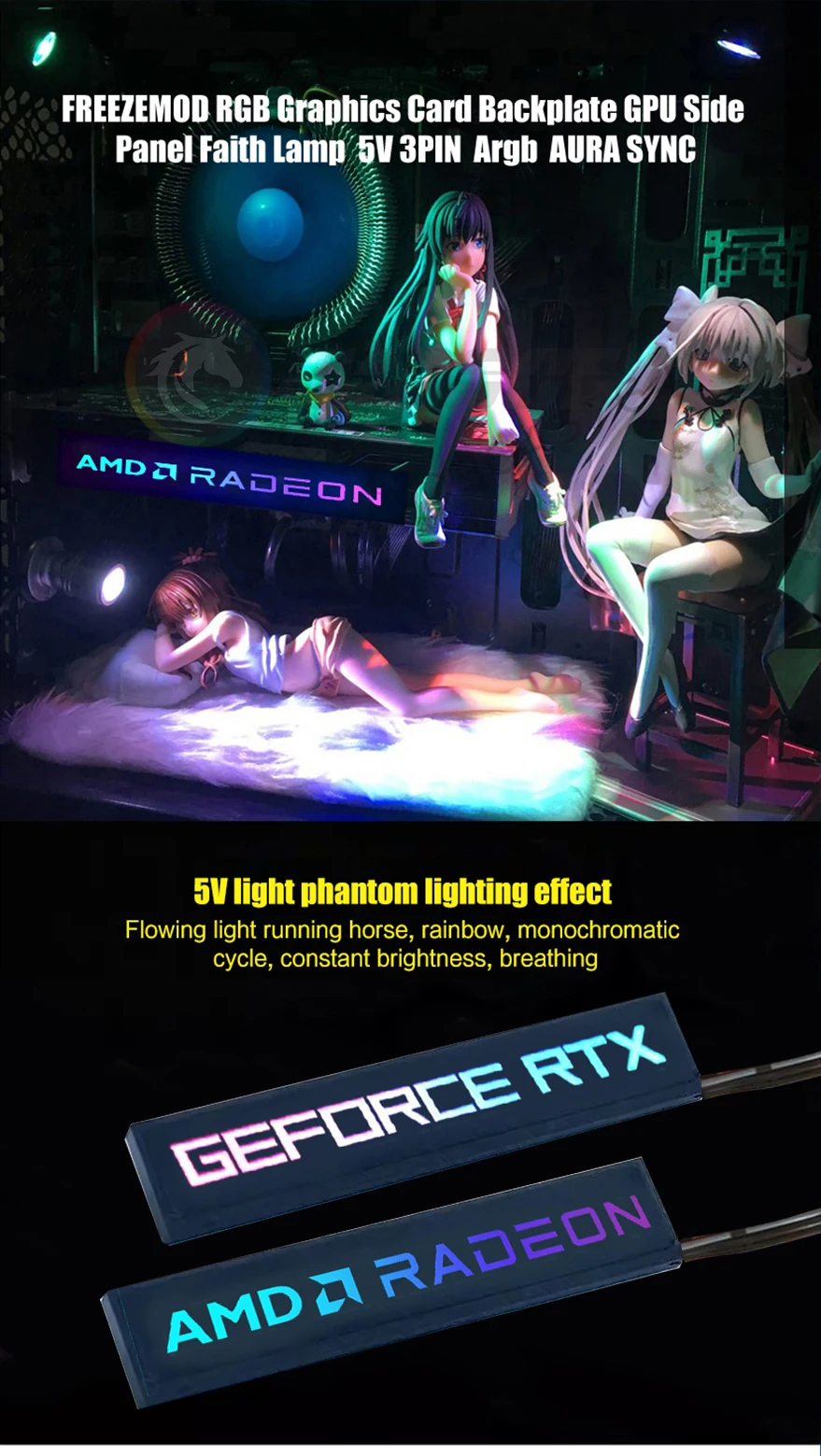 RGB Graphics Card Backplate GPU Side Panel Faith Lamp  5V 3PIN  Argb  AURA SYNC