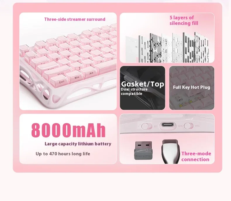 Grava Star Mercury K1 Wireless Gaming Mechanical Keyboard 79Keys Bluetooth 2.4G Wired RGB Hotswap Gamer Non-contact Keyboard