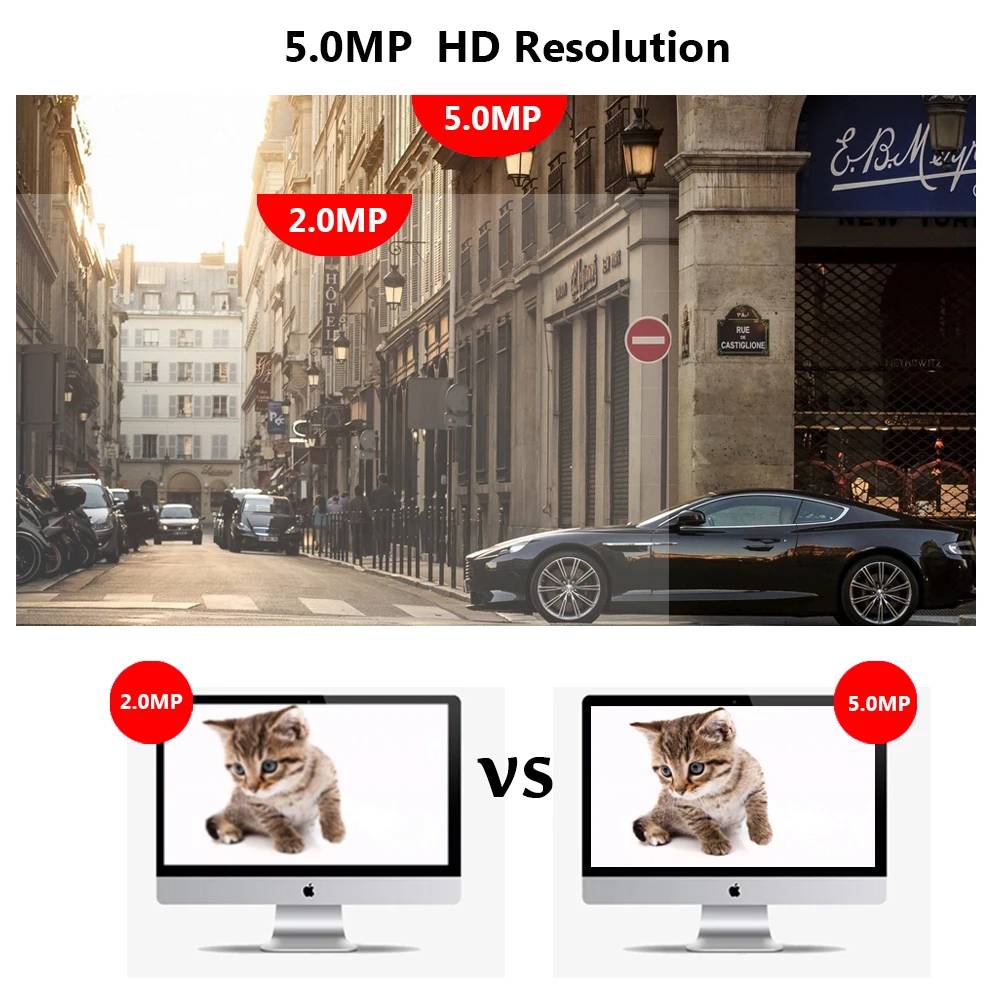 Display High-Definition interface output,Suport for online playback,Mobile remote,Multi-window display with 5.0MP Resolution.The angle will be more larger,and the image will be more clearer.