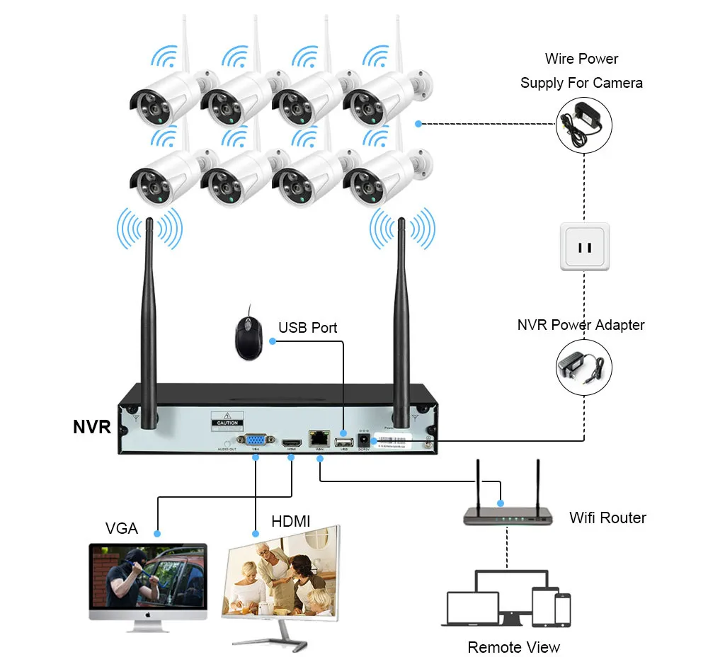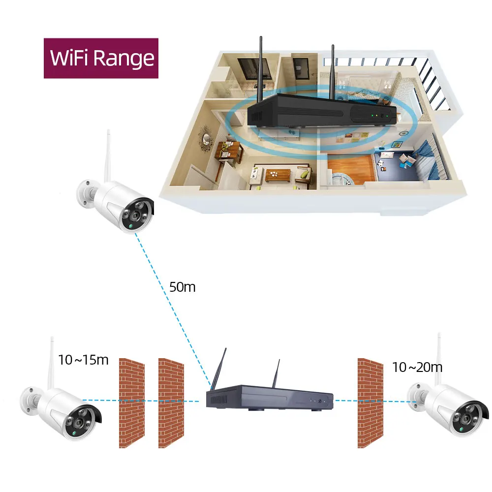 Wireless connections between cameras and NVR,Up to 50 Meters Wireless Transmission(no obstacle)