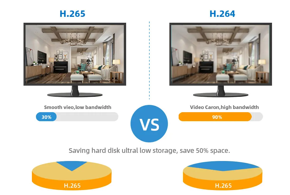 H.265 More Clear , HD resolution offer you best image quality in a lower bit rate.Save more storage space,can reduce 40%-50% file size,save your HDD storage space and reduce your purchase cost.
