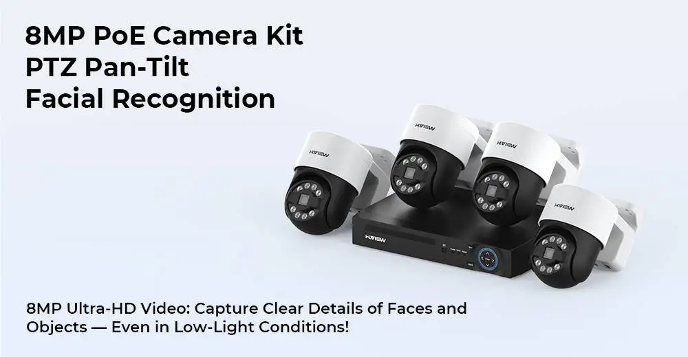 H.view 8Ch 4K 5MP 8MP Cctv Security Camera System Ptz Home Video Surveillance Kit Outdoor Ip Camera Humanoid Detection