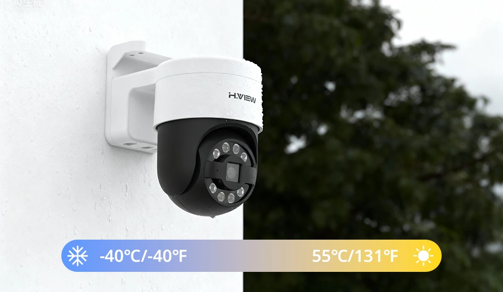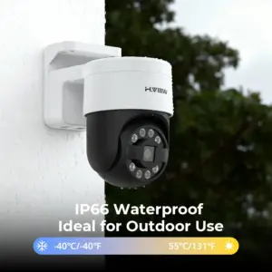 Outdoor and indoor ip camera with an IP66 waterproof rating. So you can feel free to install it outdoor, like in your garage, backyard, or anywhere else. It can stand harsh weather conditions, including rain, snow, intense cold and heat.