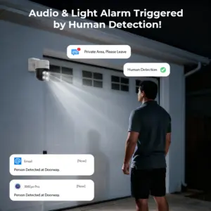 AI Person Detection is Different from traditional PIR or motion detection. Built-in updated sensor will only detect human movement, won’t be triggered by leaves, animals or insects.
