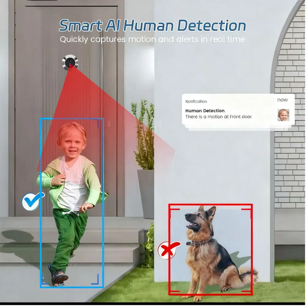 Home Smart Tuay Wireless 2.4G Wifi Peephole Video Door Camera 5MP PIR One Way Audio Security Door Eye With Camera for Apartment