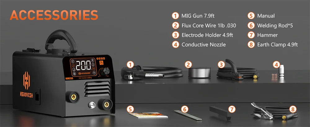 【Complete Functions】HZXVOGEN MIG welding machine has MIG/MAG and MMA/ARC 2 in 1 function. Equipped with intelligent one-button control system and digital display. MMA welders have better control of welding current and speed. Meet your welding needs.