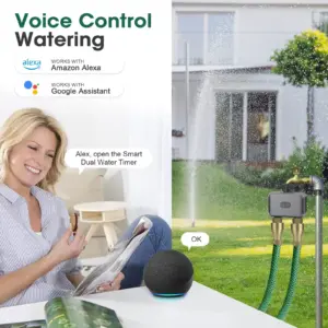 【Smart Voice Control】: Insoma outdoor sprinkle timer is compatible with Alex and Google Assistant, allowing you to turn the watering timer on and off using simple voice commands. Enjoy the hands-free convenience of controlling the watering system with your voice.