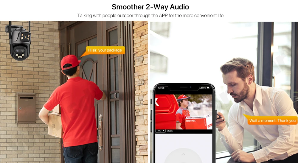 Built in microphone and speaker,support real time video,which allows you talk with your visitor in real time wherever you are.