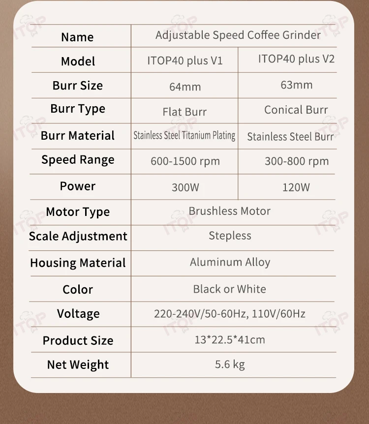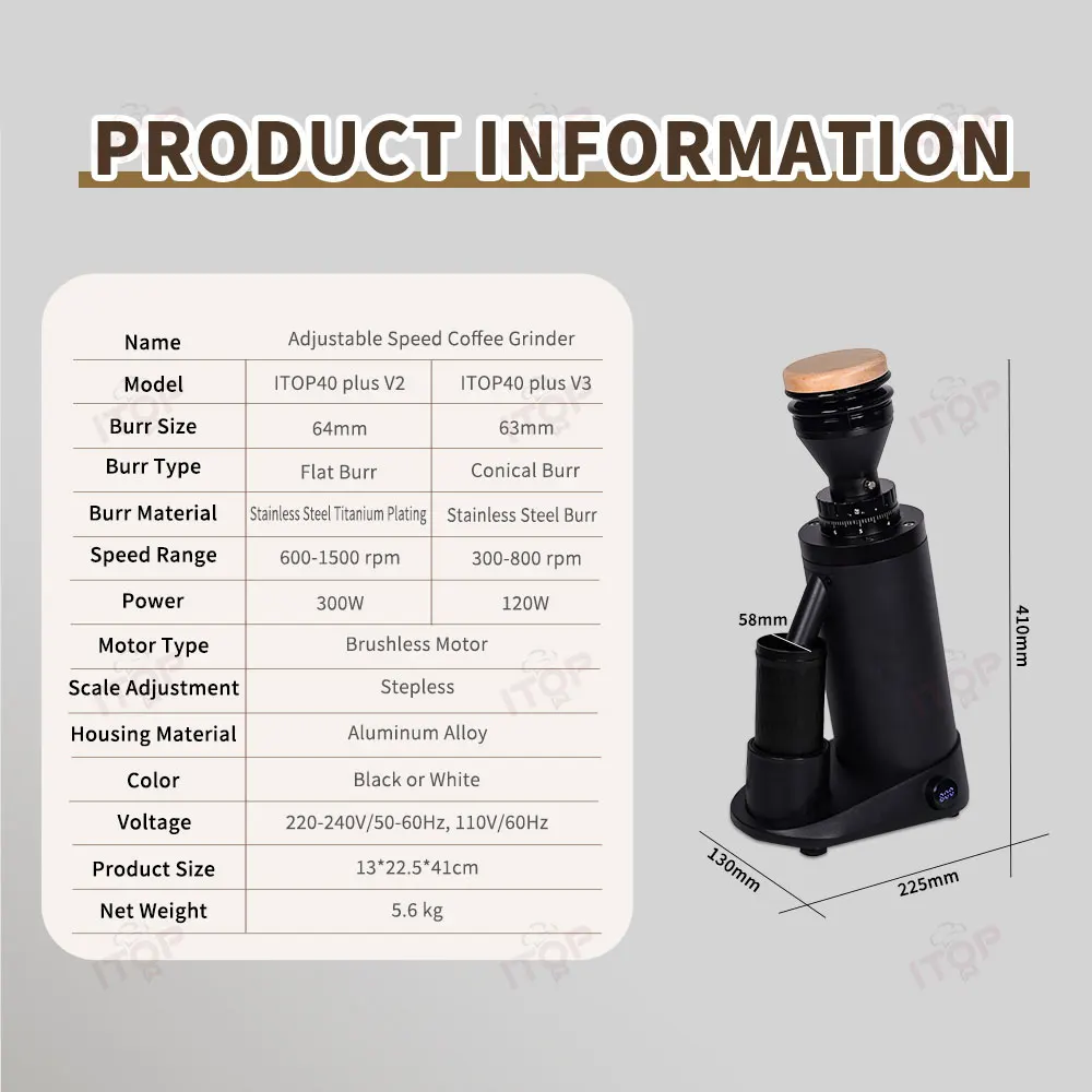 ITOP40 Plus-V1/V2 Coffee Grinder Machine 64MM Flat Titanium Burrs Adjustable Speed Version Coffee Grinder Espresso Grinder