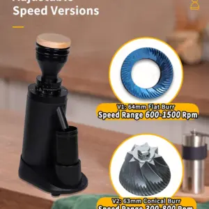 V2: 63mm Conical burr, speed range 300-800 rpm