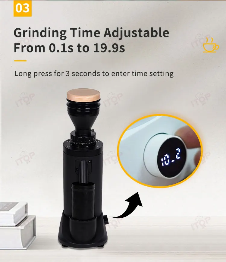 ③.Grinding time adjustable from 0.1s to 19.9s, Long press for 3 seconds to enter time setting