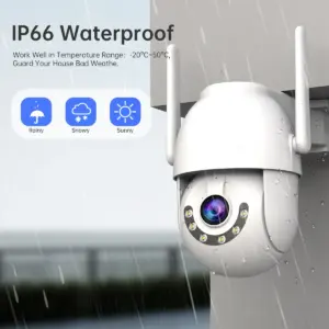 This PTZ camera has a built-in microphone and speaker. So you can talk to your child remotely at any time via your smartphone.IP66 Waterproof