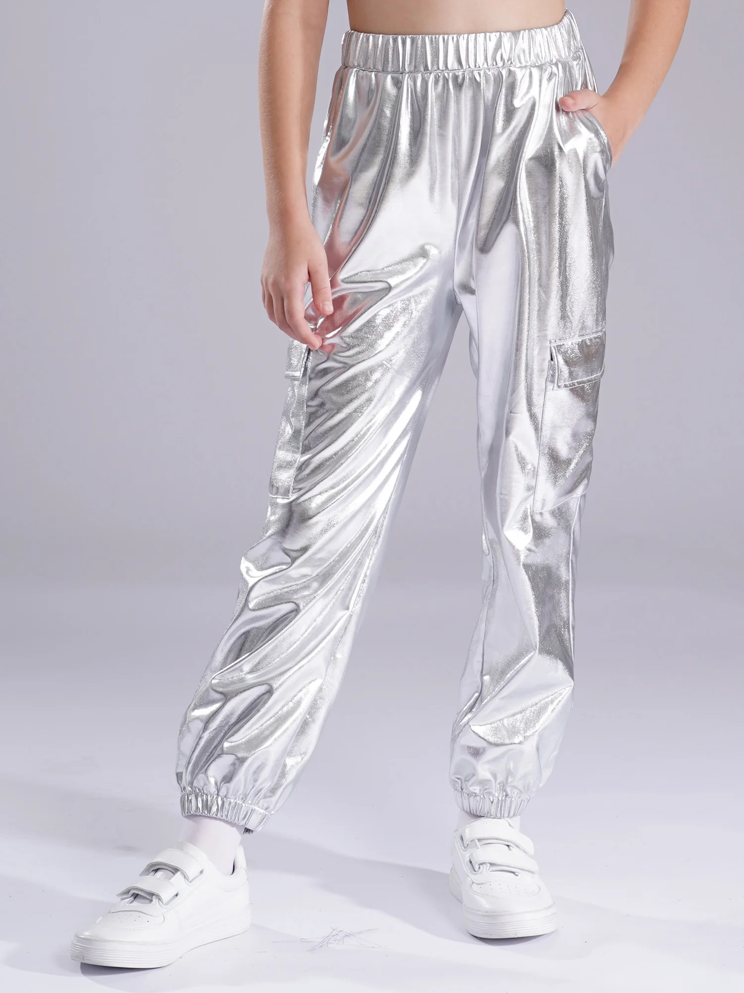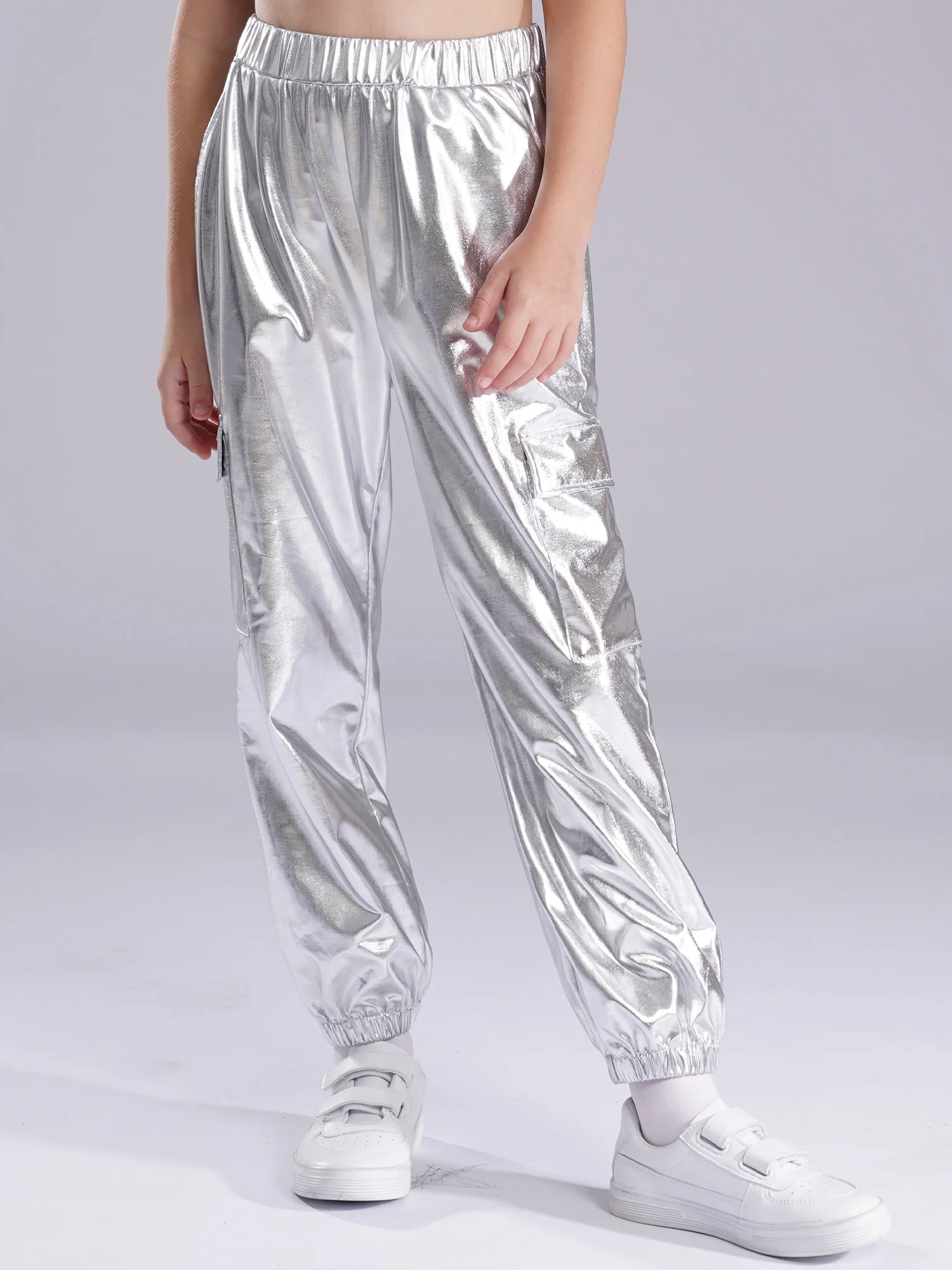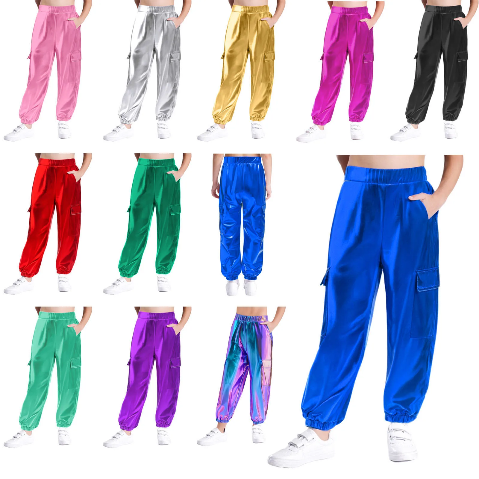 6 reviews for Kids Boys Girls Metallic Shiny Cargo Pants Fashion Children Holographic Trousers Teens Hip-Hop Pants Street Jazz Dance Costume
