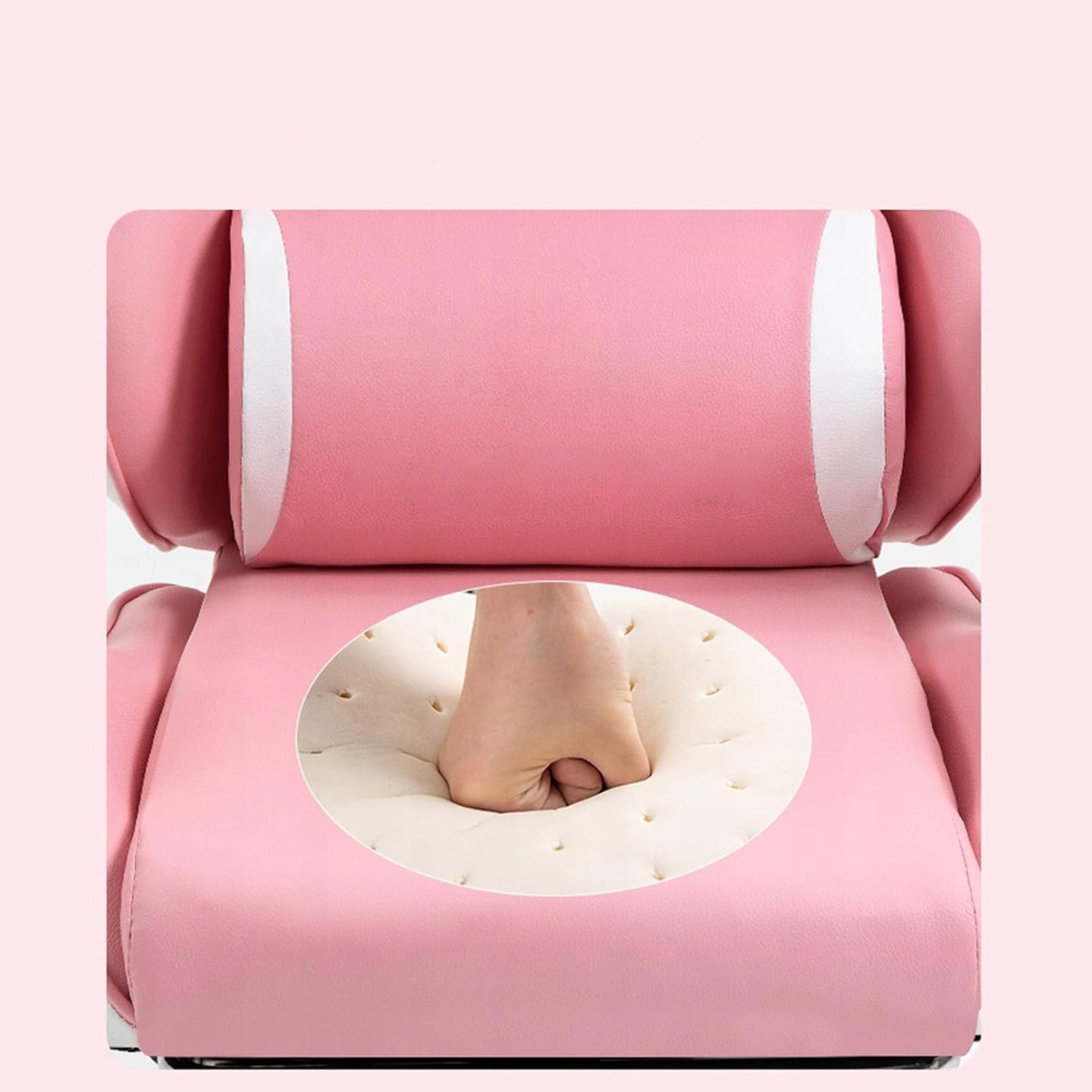 The pink and white color scheme and delicate finishes make the armchair blend wonderfully with the children’s room, adding coziness and charm.