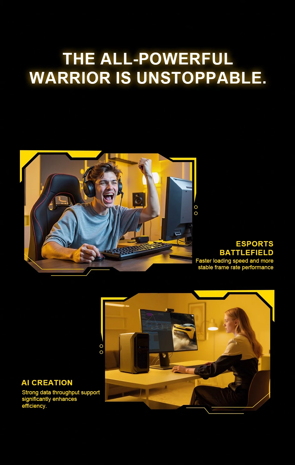 The dual-channel design strives for zero latency in data transmission allowing 3A games to run with all effects smoothly like silk.The game loads one step ahead, allowing every team battle to take the initiative