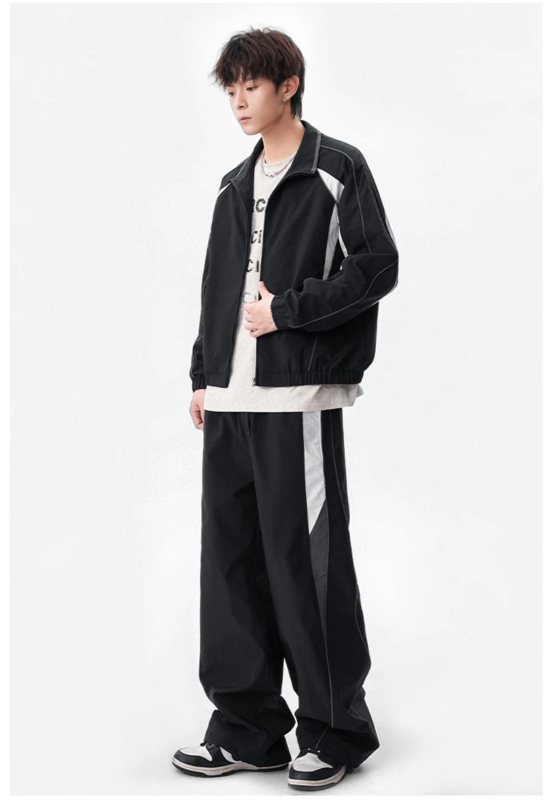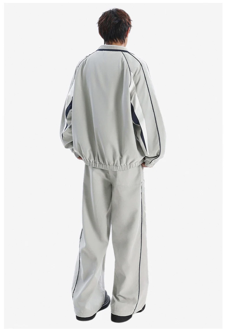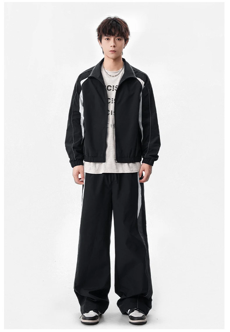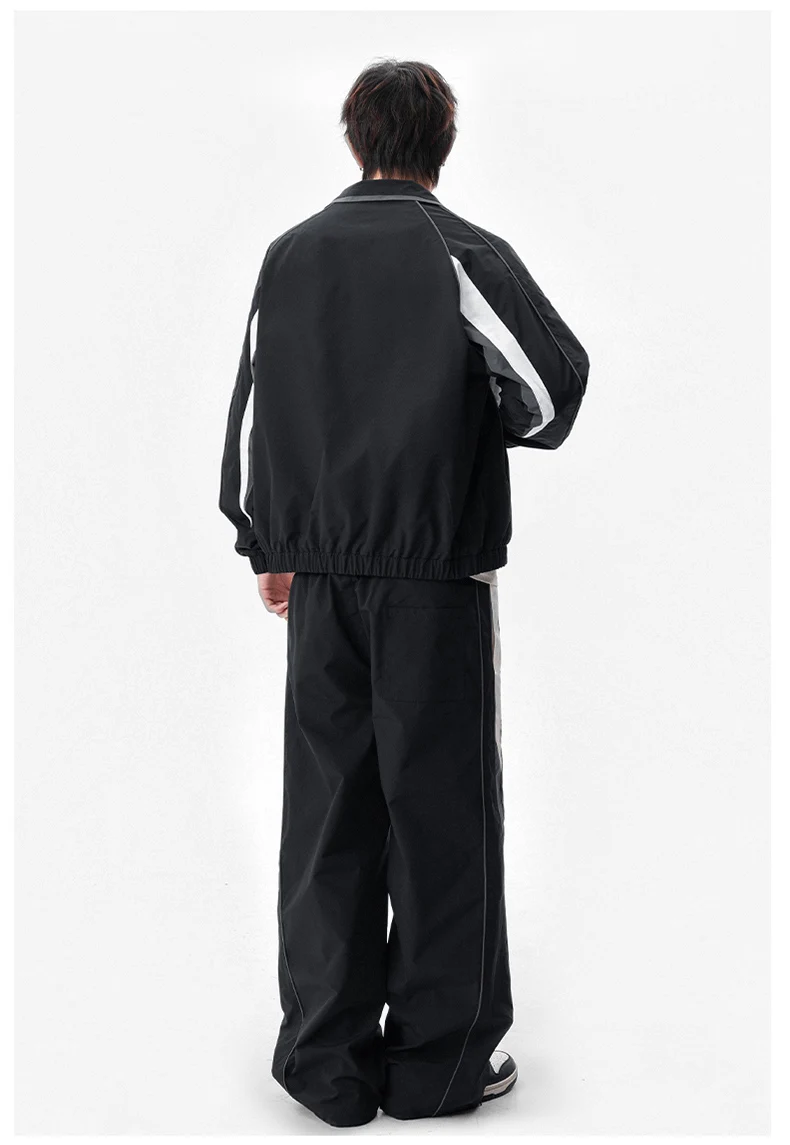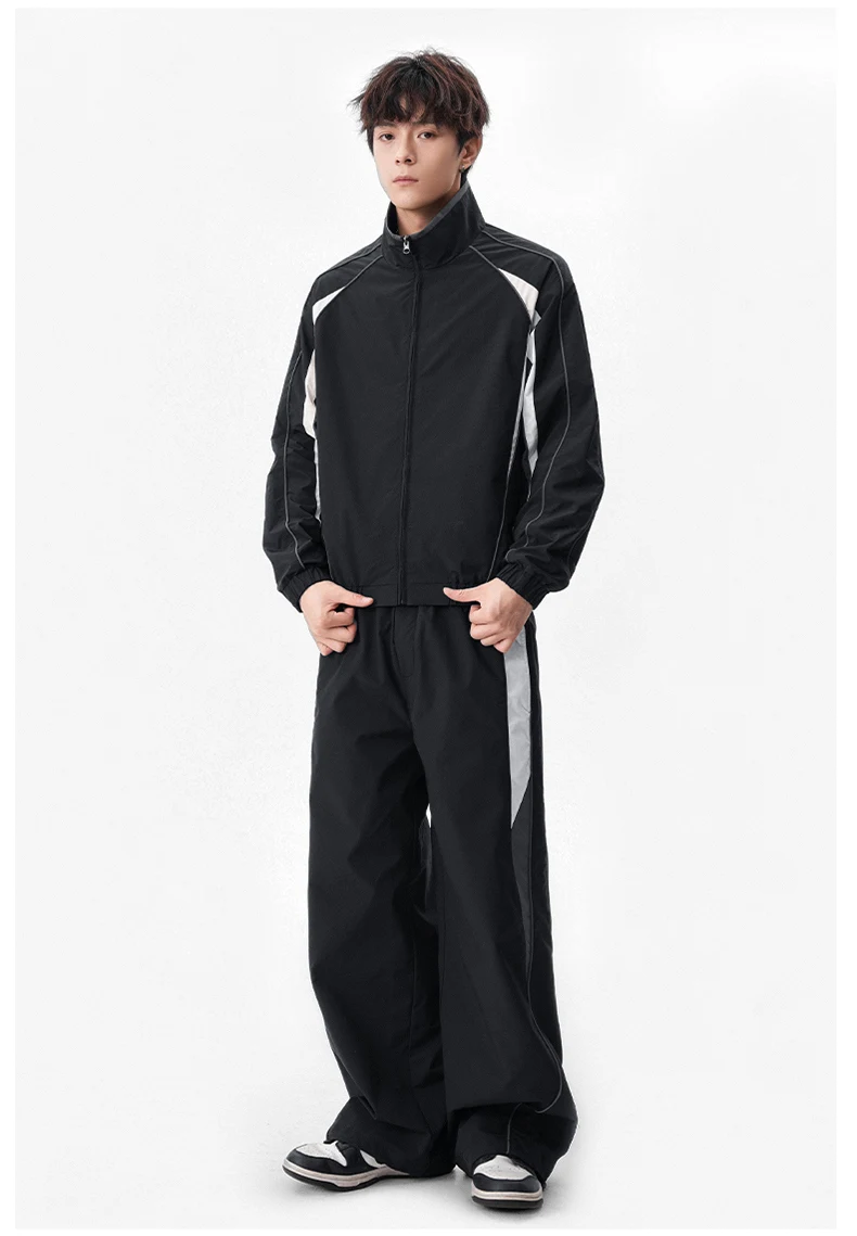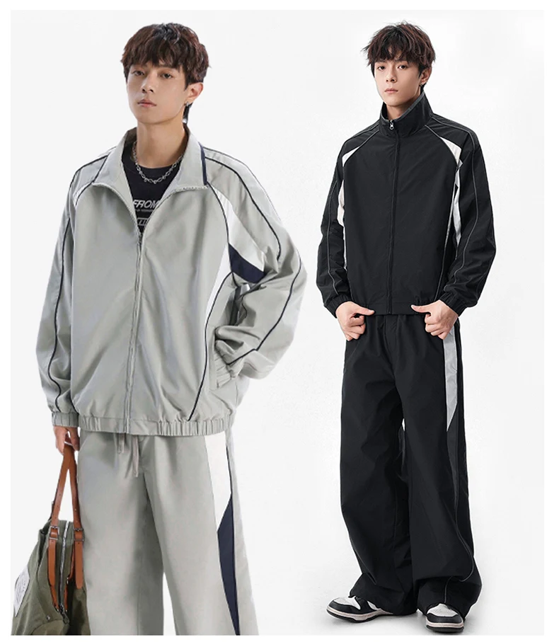 Men 2-piece Running Jacket Pants Autumn Outdoor Waterproof Color Block Casual Suit Stand Collar Coat Sports Pant Set Sportswear