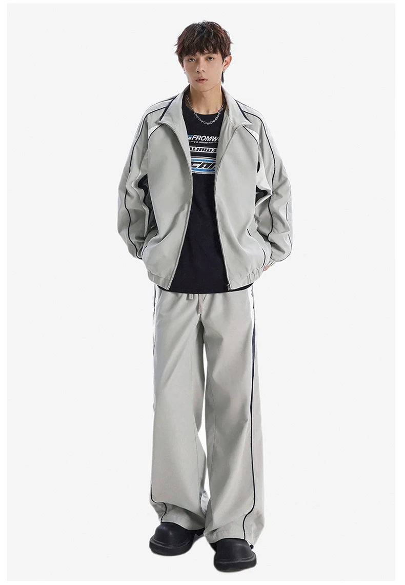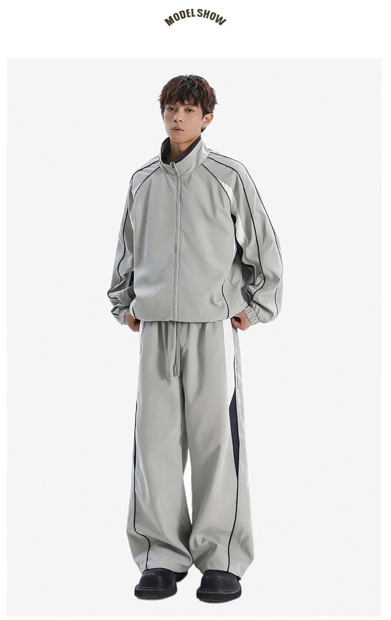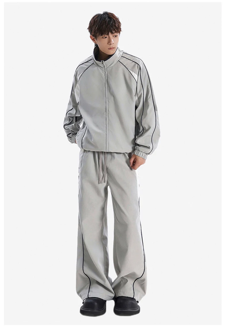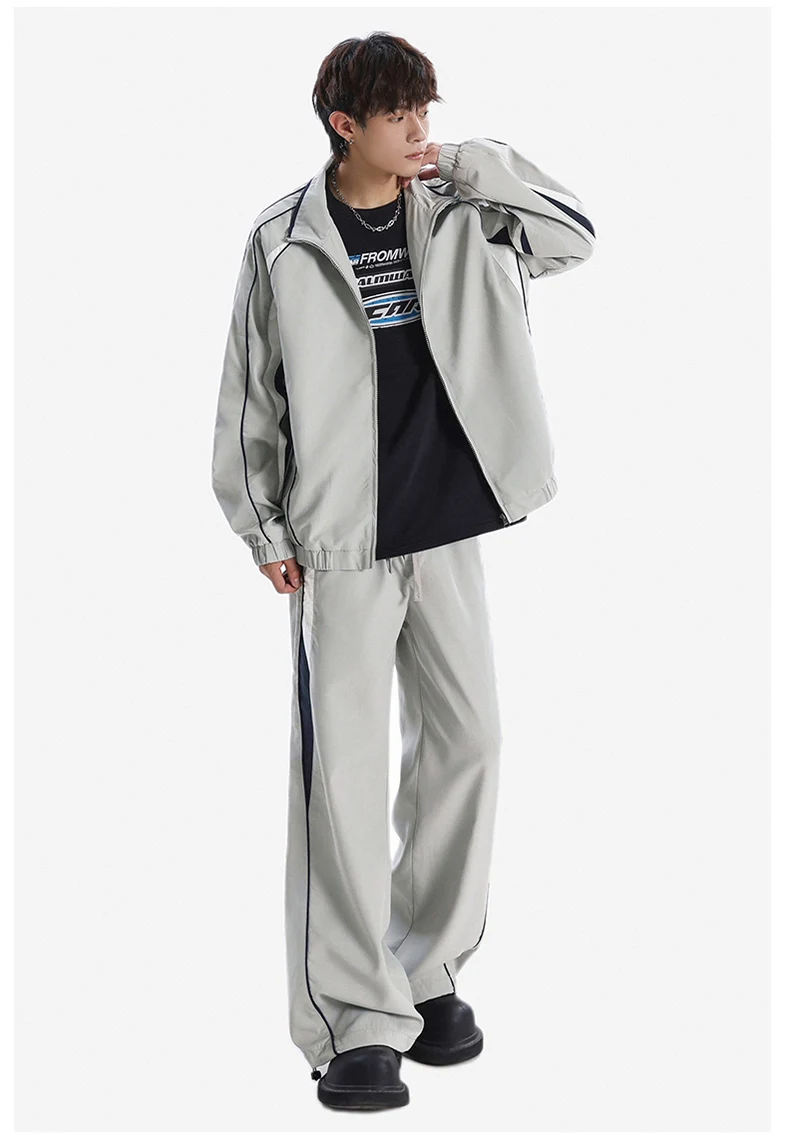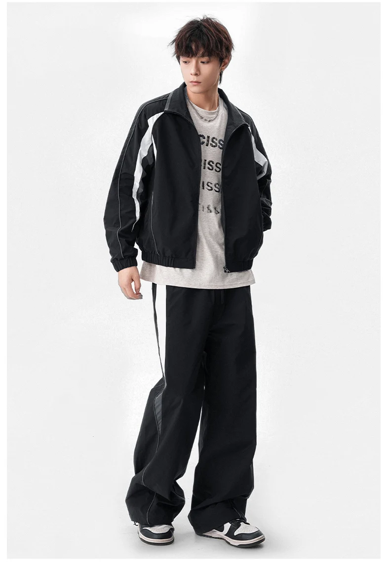 Men 2-piece Running Jacket Pants Autumn Outdoor Waterproof Color Block Casual Suit Stand Collar Coat Sports Pant Set Sportswear