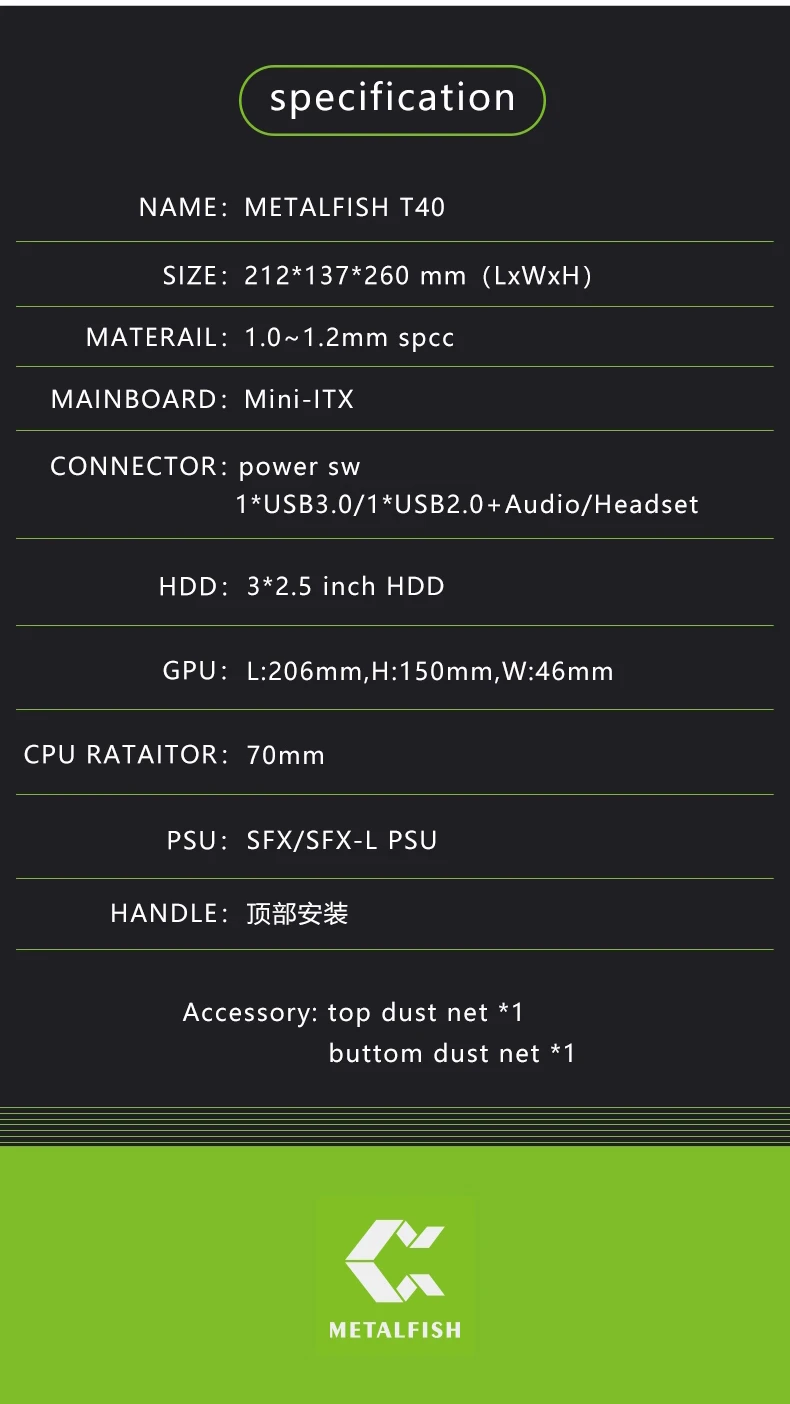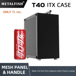 METALFISH T40 Mini ITX Black Case 7L Gaming Computer Chassis Compact transparent PC Support SFX PSU/70mm Cooler With Handle