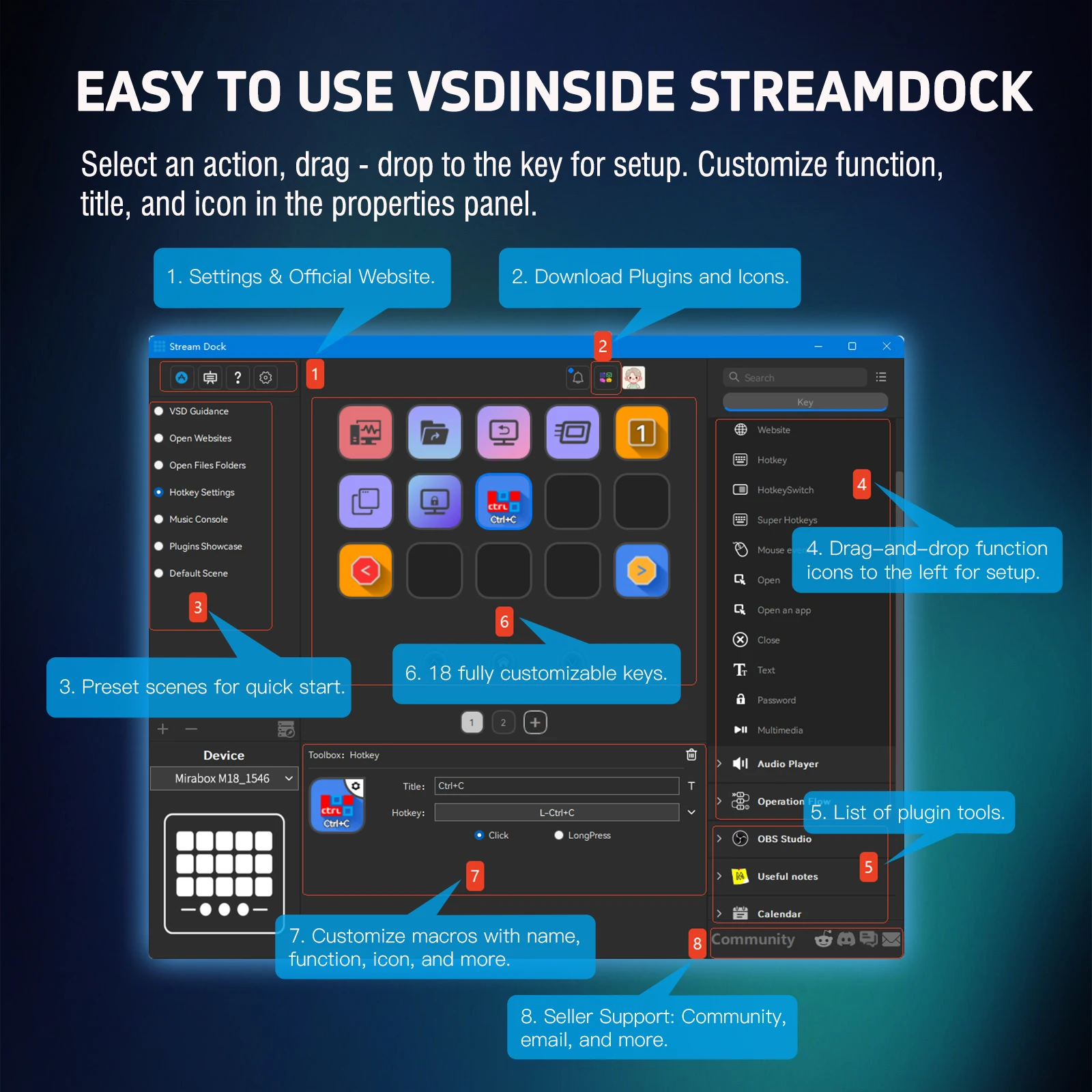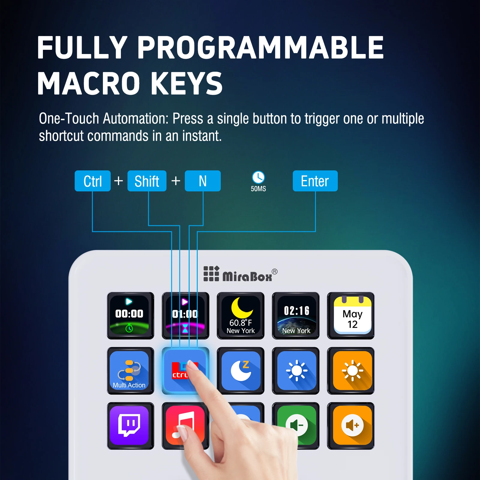 Mirabox Mbox M18 V3 Stream Deck macropad Streamdeck Deck Dock Macro Mini Keyboard Creative Visual Desktop Console Stream Desk
