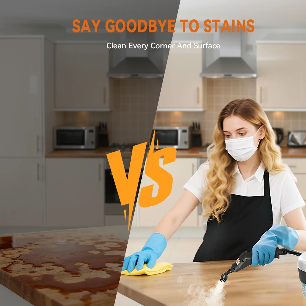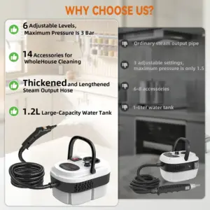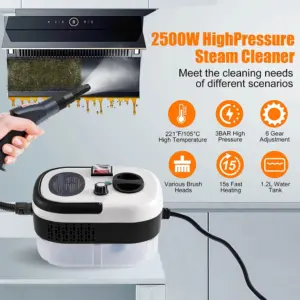 1. Powerful 2500W High-Temp, High-Pressure Steam: Boasts a 2500W heating core that rapidly reaches 221°F (105°C) and 3BAR pressure in just 10-15 seconds. Effortlessly blasts away stubborn grease, grime, and stains from kitchen counters, stoves, ovens, and more—no harsh chemicals required for deep cleaning.