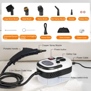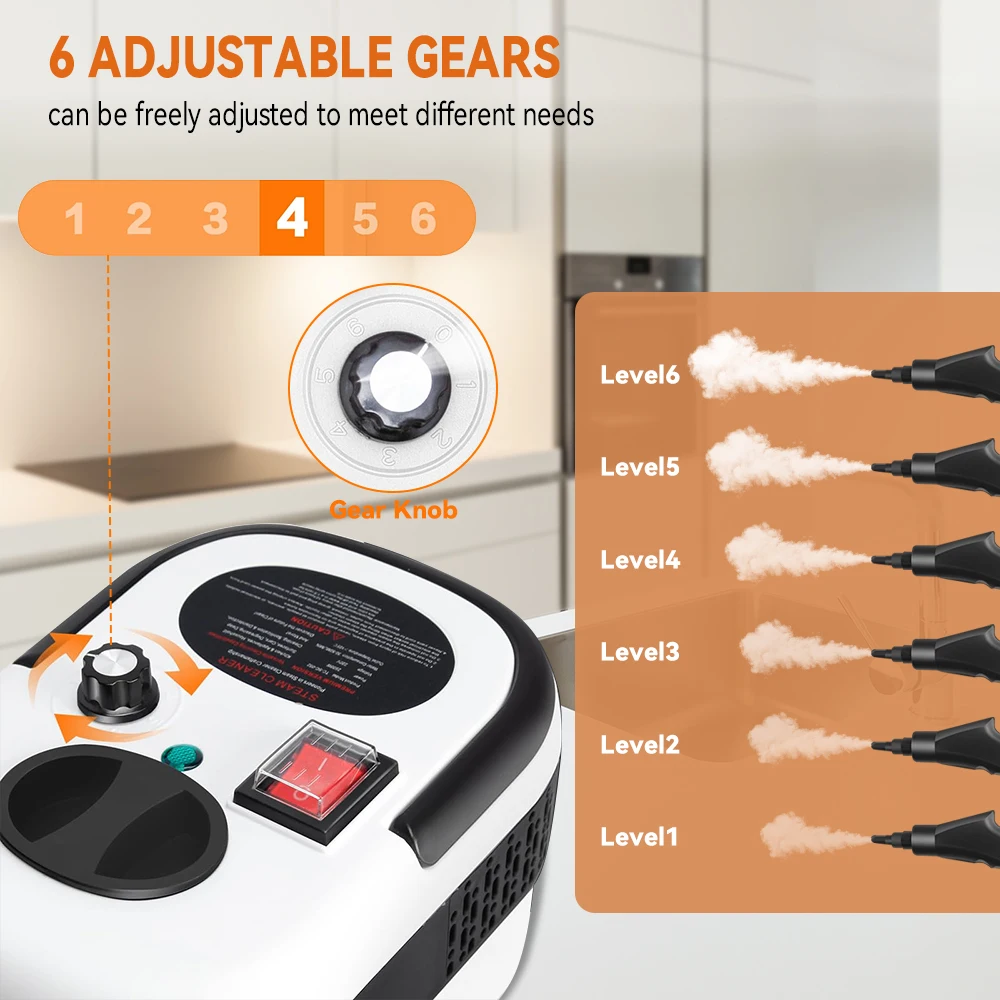 3. 6-Speed Versatility with Complete Accessories: Adjust steam intensity across 6 gears to tackle diverse tasks. Comes with a full set of tools—including multiple brushes, extended rods, and specialized nozzles—for grout, windows, car interiors, upholstery, and hard-to-reach corners. One machine, endless cleaning possibilities.