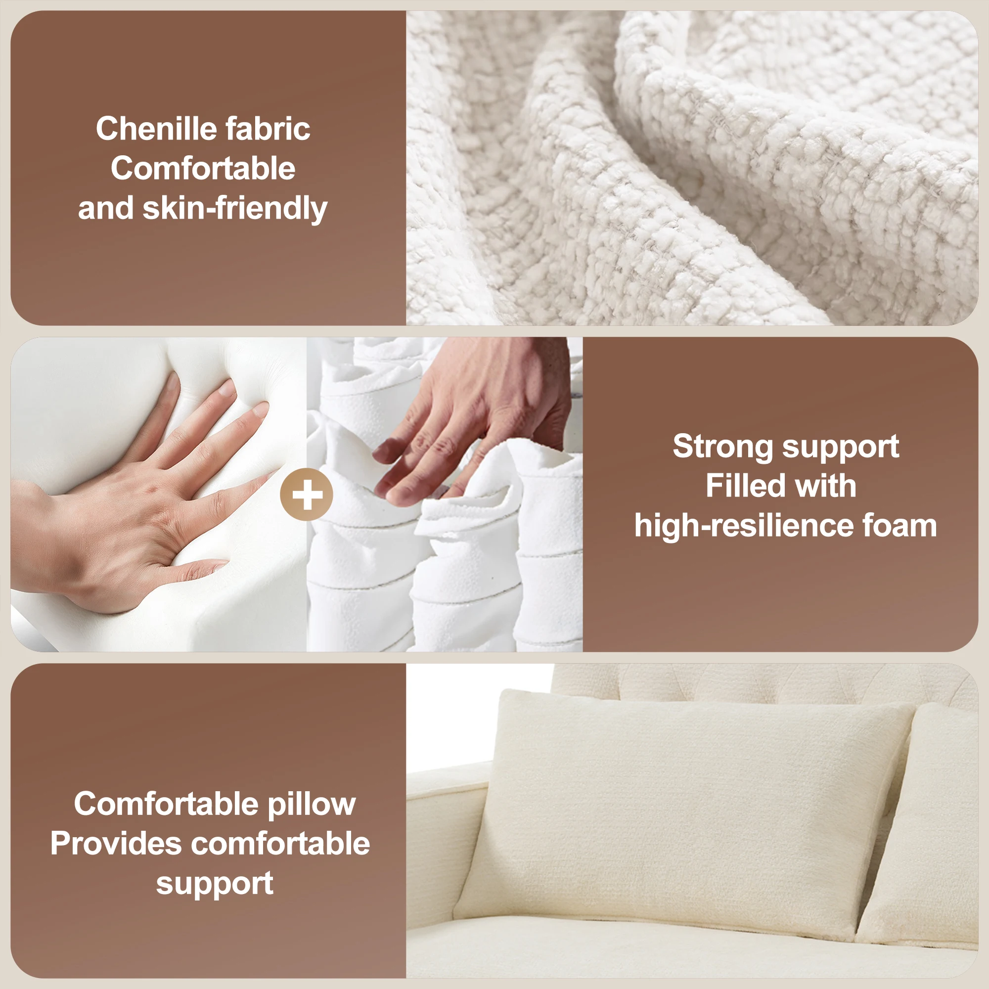 Product Type Sofa bed Design Multi-function sofa Products include Double seat sofa, sofa bed, 2 pillows Seating capacity 2 persons Material Chenille fabric Frame material Iron, Artificial Wood, Solid Wood Furniture Leg Material Plastic Seat Filling Material High Elastic Sponge, Pocket Spring Core, PP Cotton Filling Material Backrest PP Cotton Removable Seat Cushion No Position of Removable Seat Cushion No Turning Seat Cushion No Cushion Included Yes Seat Style Seat with Multiple Pillow backrest style 3-stage adjustable backrest