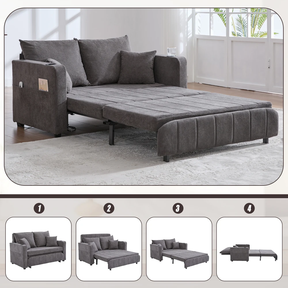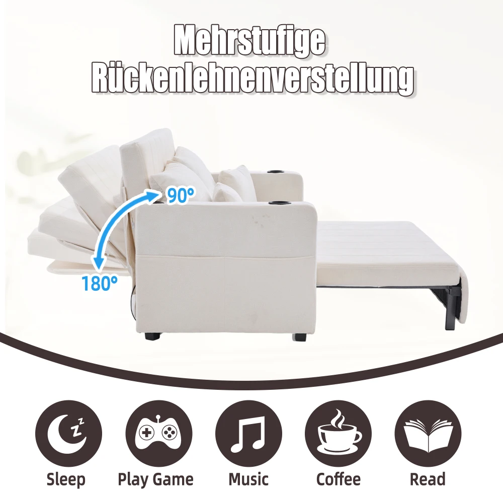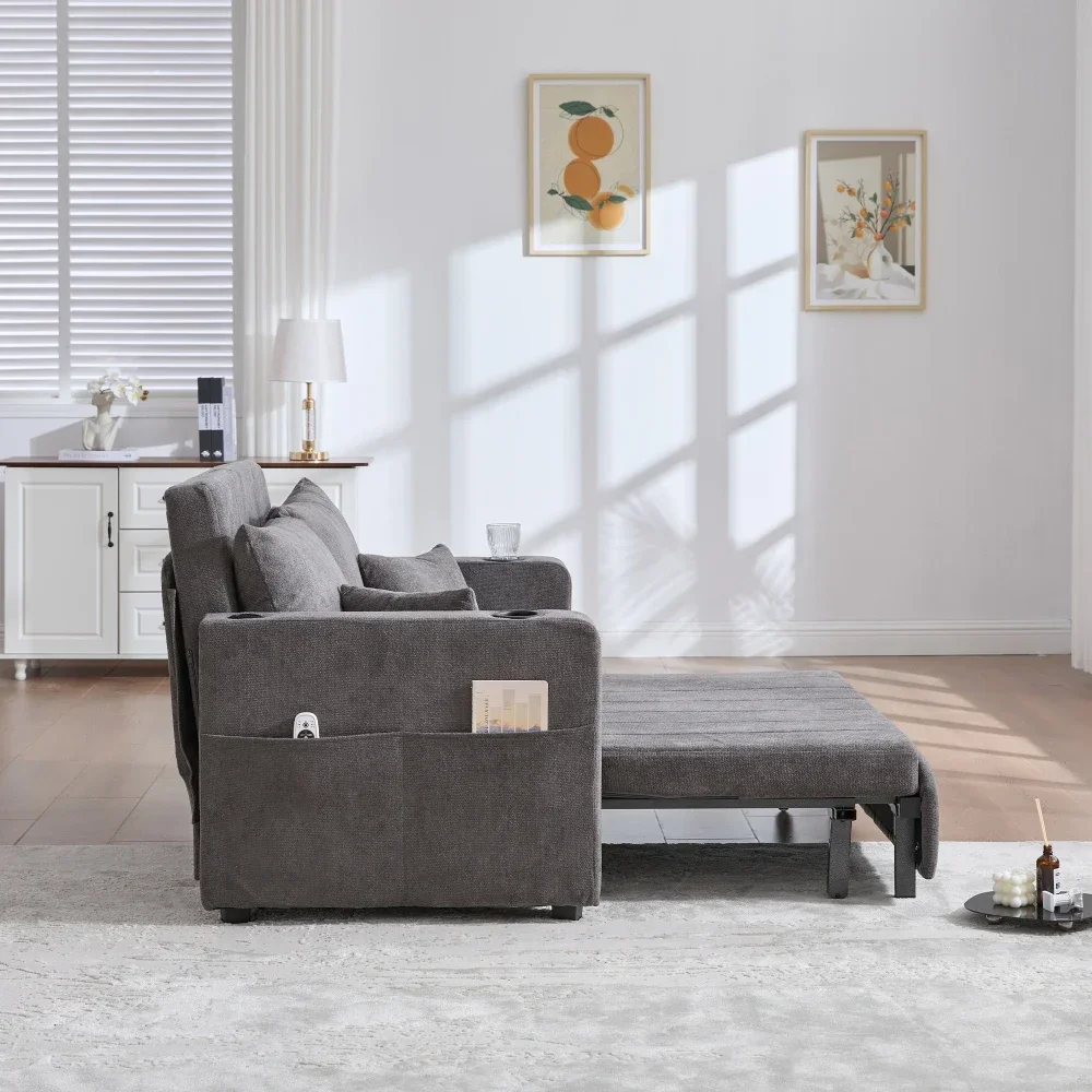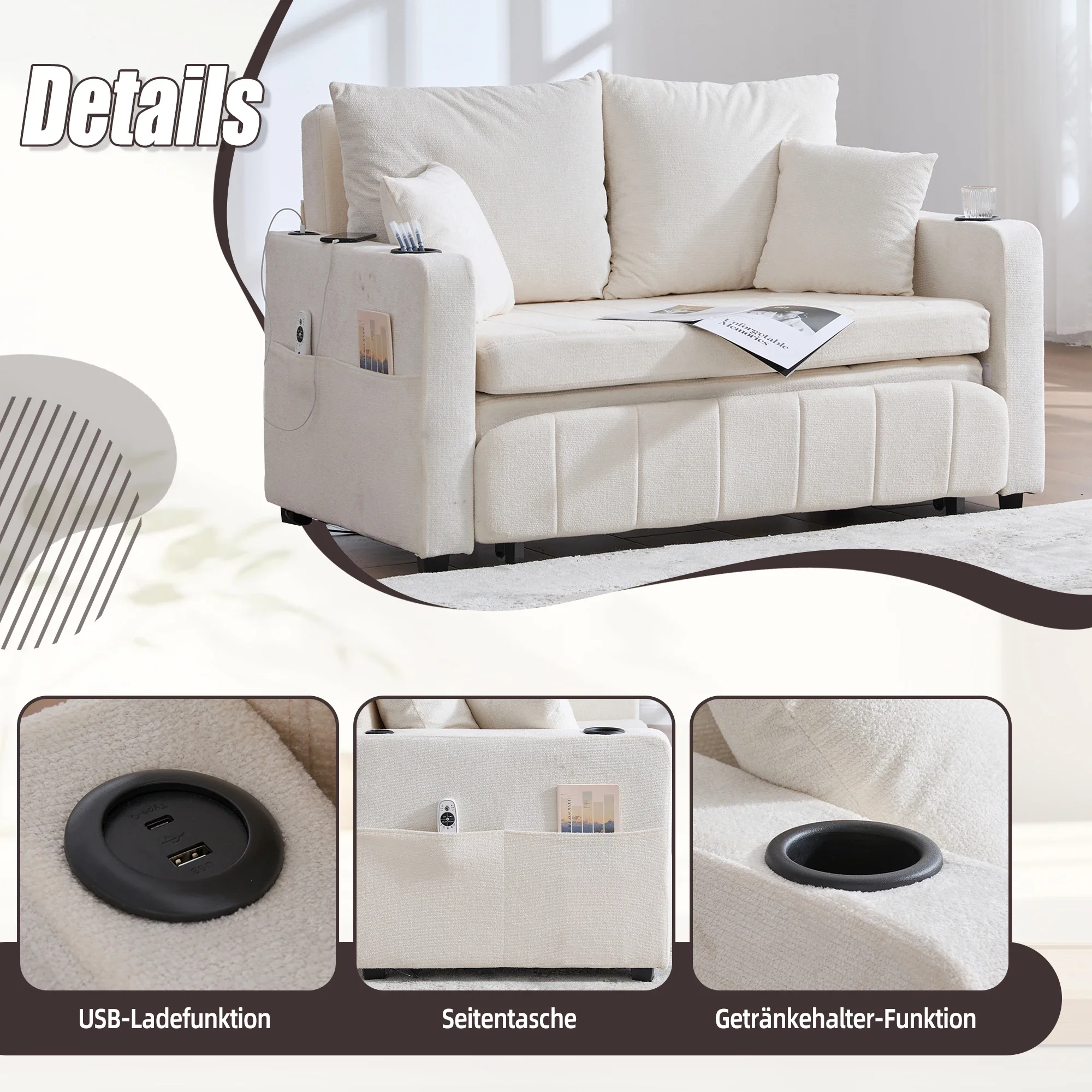 Multifunctional fabric sofa Folding pull-out sofa with two functions Removable and washable With USB