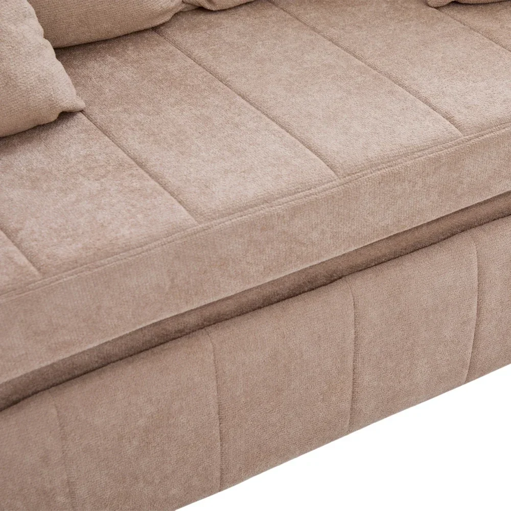• Including pillows: This sofa is equipped with two large and two small pillows, so a total of four pillows made of soft, comfortable fabrics, filled with high-quality foam.