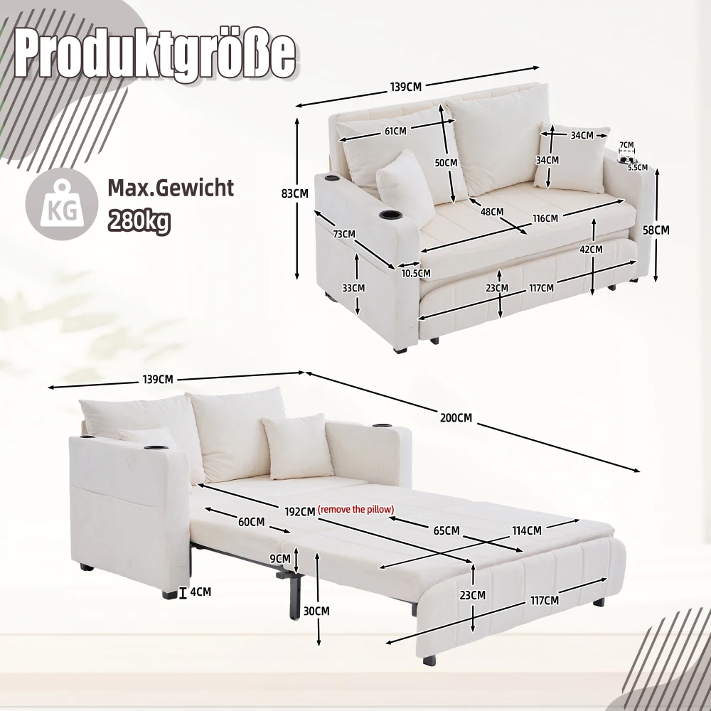 • MULTIFUNCTIONAL DESIGN: This sofa can be easily converted into a bed, suitable for hosting guests or daily use in leisure, meets the needs of small apartments or multifunctional spaces.