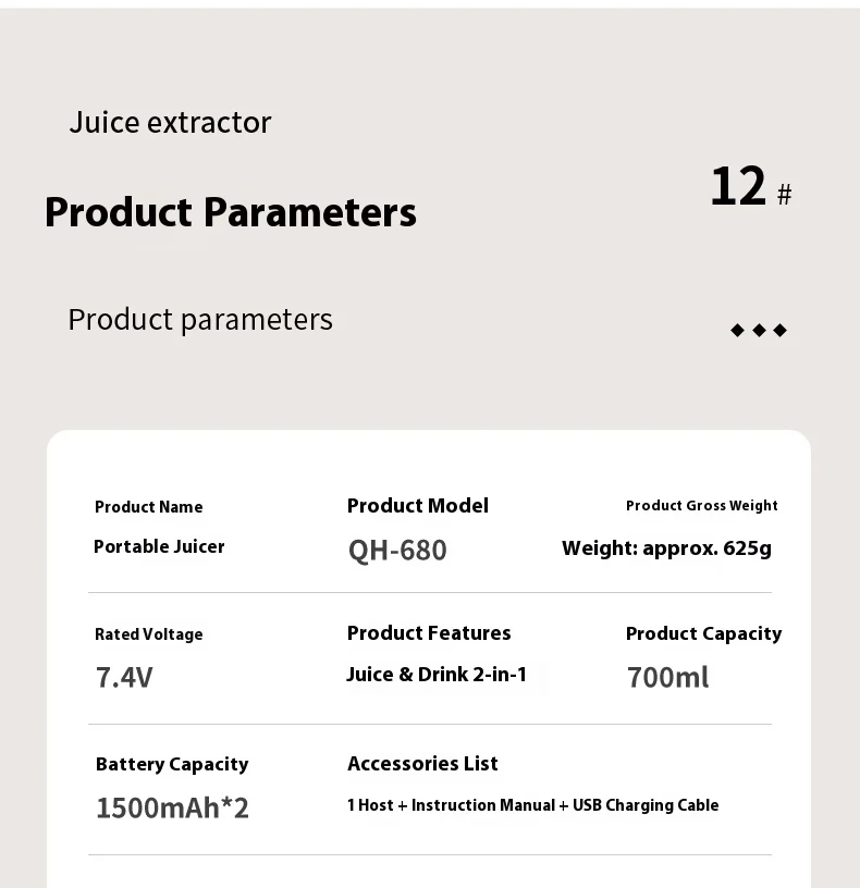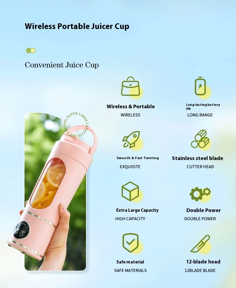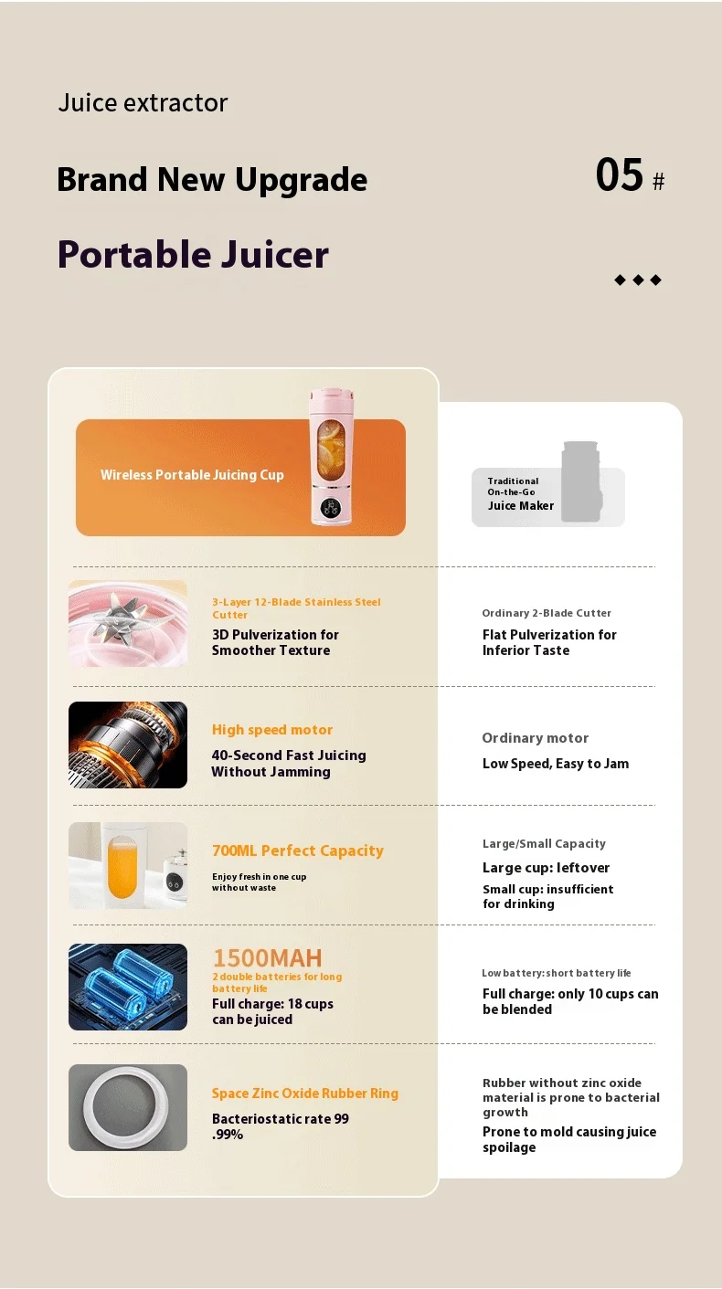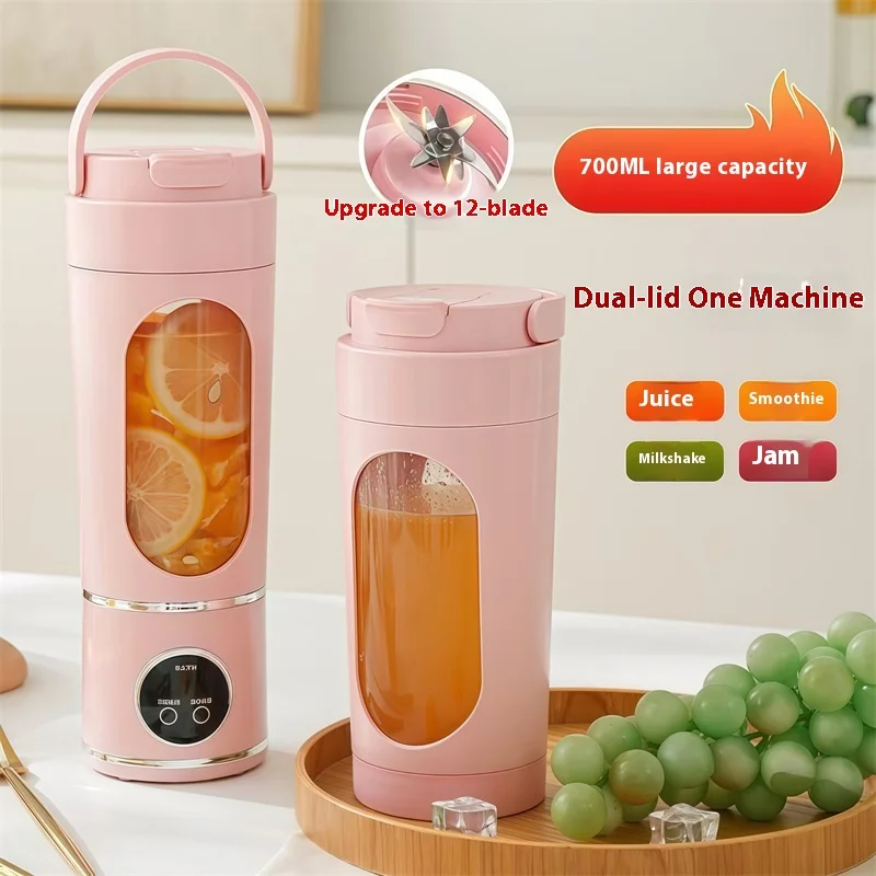 New Household Charging MINI Portable Juice Maker Blender 700ML Large Capacity Digital Display Juice Cup 12-Blades Juicer