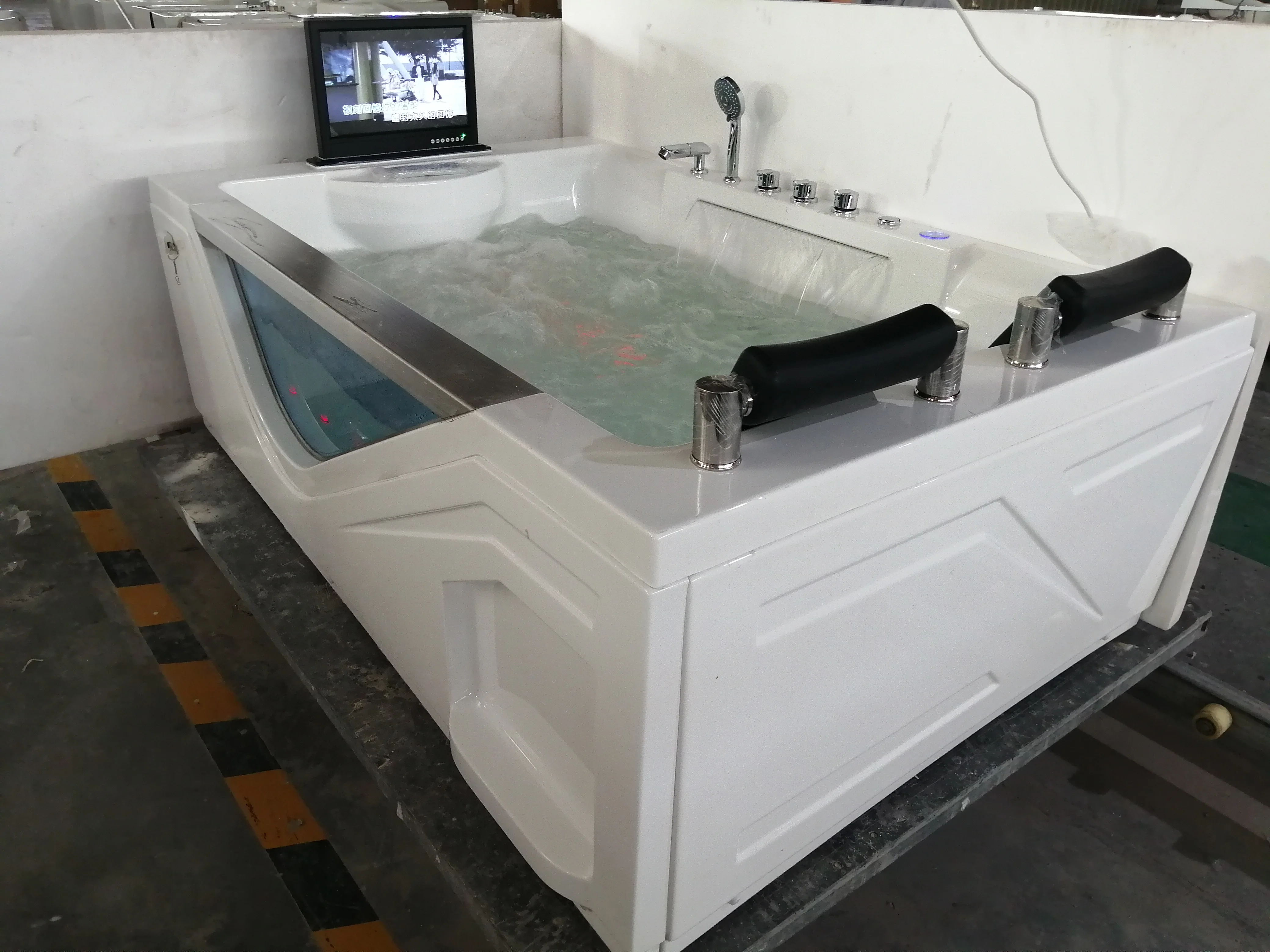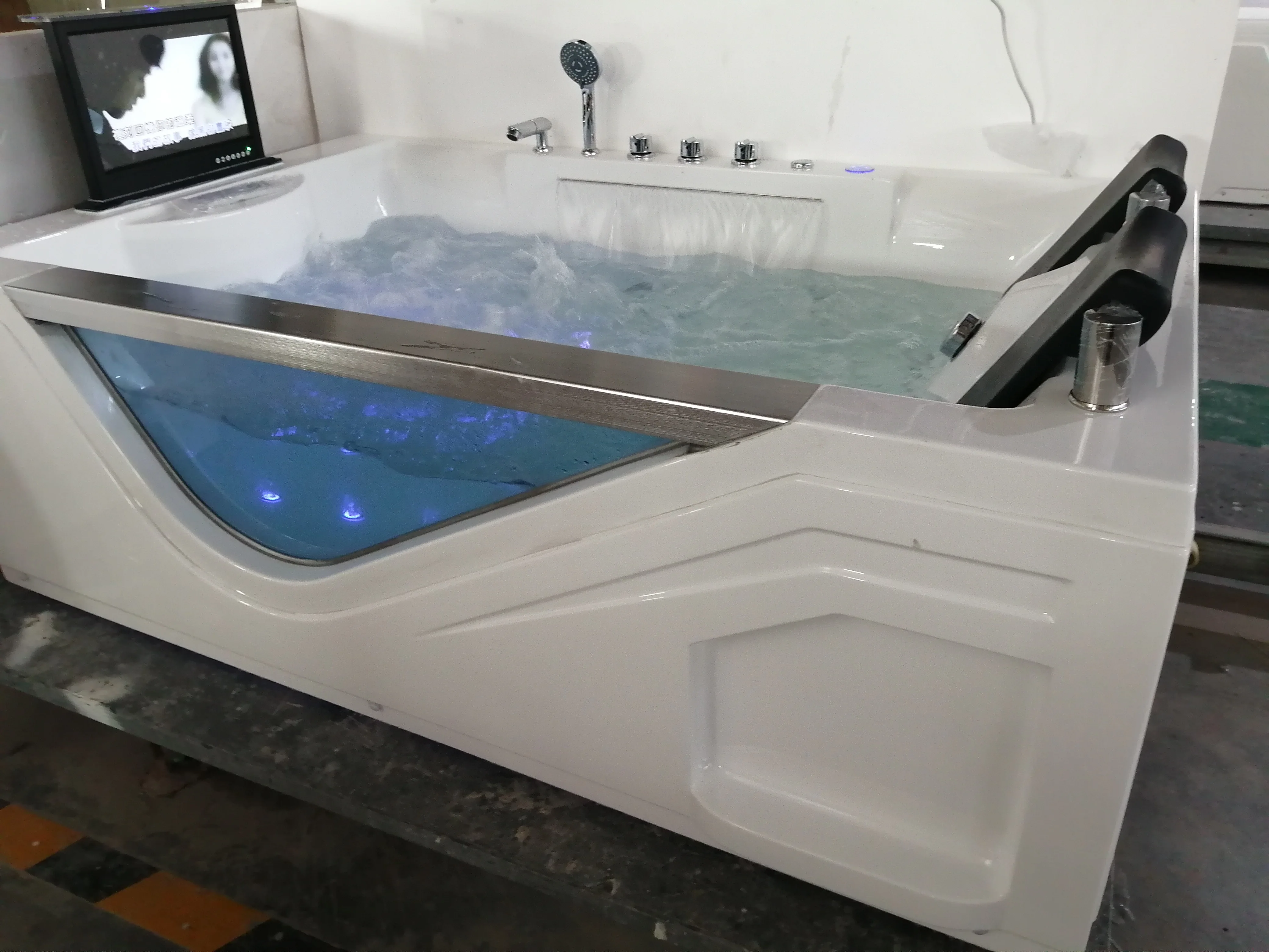 1.computer control panel with blue tooth and speaker 2.lifted TV connect WIFI 17,19,32……inches 3.air bubble jets with colorful lights 4.colorful LED lights inside 20-30 pcs (around the tub) 5.colorful LED lights outside (on the skirt) 6.more massage jets 7.luxury waterfall 8.ozone 9.thermostat heater pump 10.air pump 11.other colors 12.other functions |